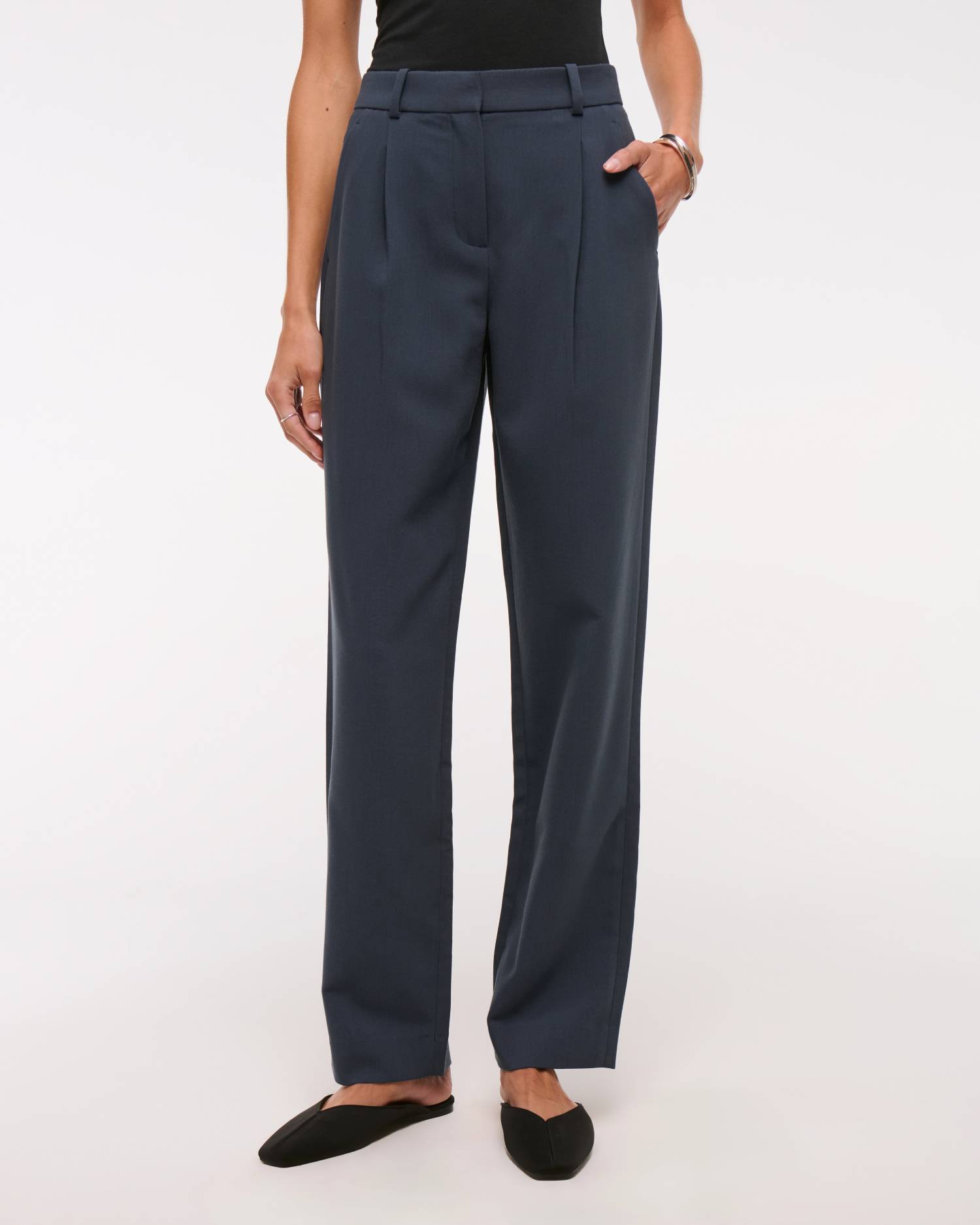 High rise pant in our everyday menswear fabric and straight-leg silhouette, that has a slightly slimmer leg shape than our Sloane pant. Features a clean fixed waistband, figure-flattering pleat detail, pockets and a functional zipper. Imported.