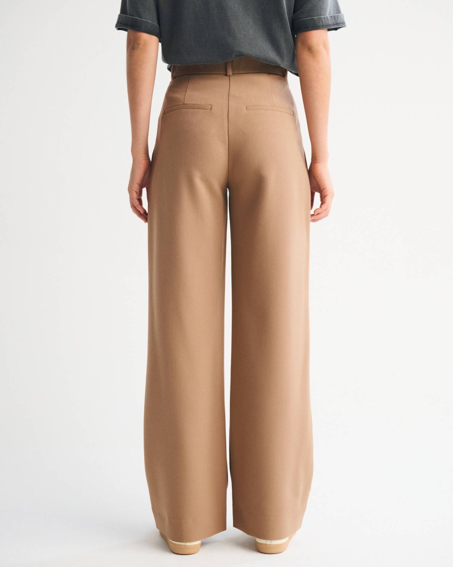 Our signature A&F Sloane Tailored Pant in an everyday menswear fabric, that’s perfect for dressing up or down. The Sloane Tailored Pant is an ultra-high rise tailored wide leg pant with figure-flattering pleating details, a functional fly and pockets and a partially elasticated waistband for ultimate adjustability. The intended length hits the bottom of a flat shoe. Please reference our size chart to determine your perfect size and inseam!?? Imported.