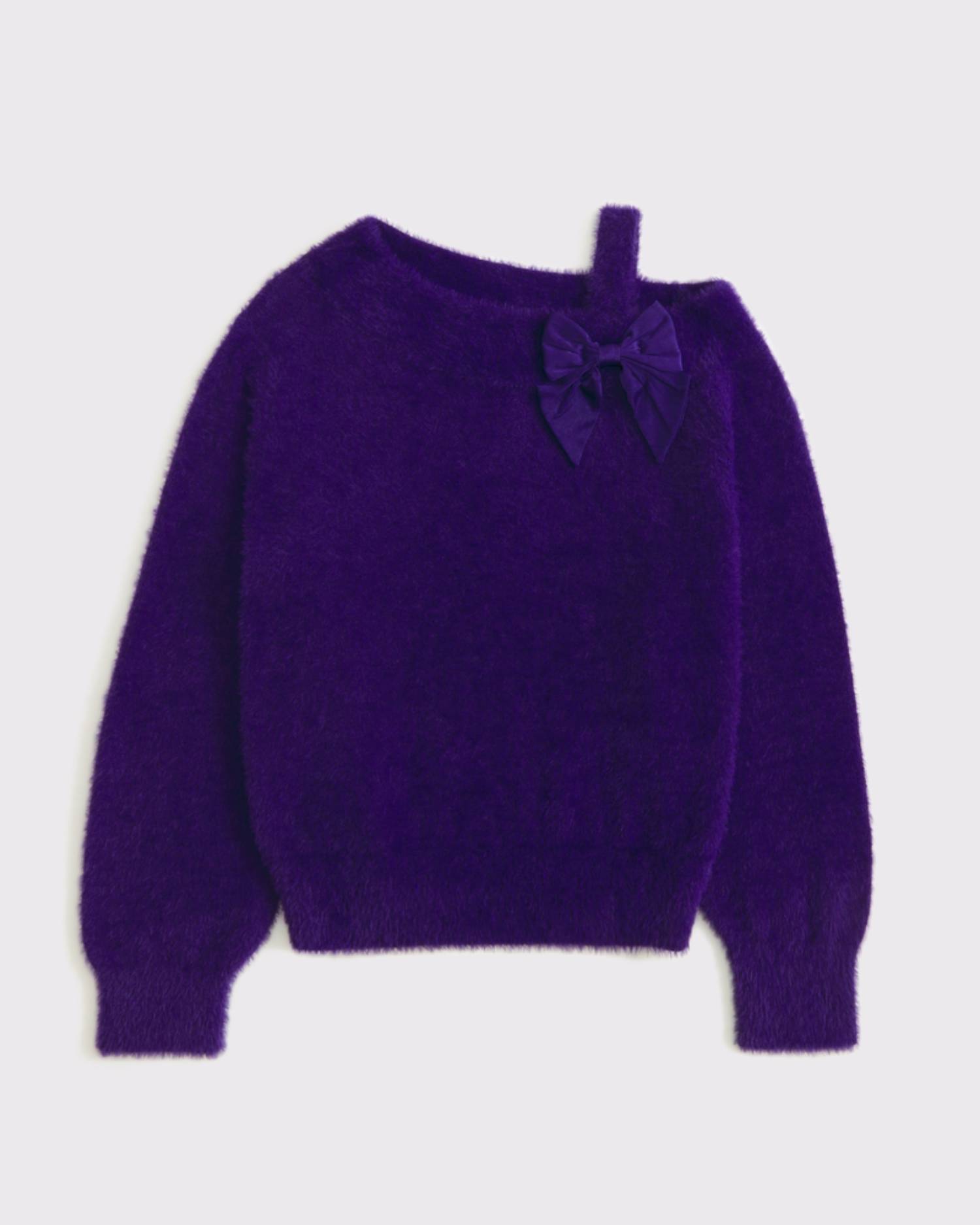 Easy-fitting sweater in our soft sweater-knit fabric, with small bow detail at left chest, asymmetrical neckline and banded hem and cuffs. Imported.