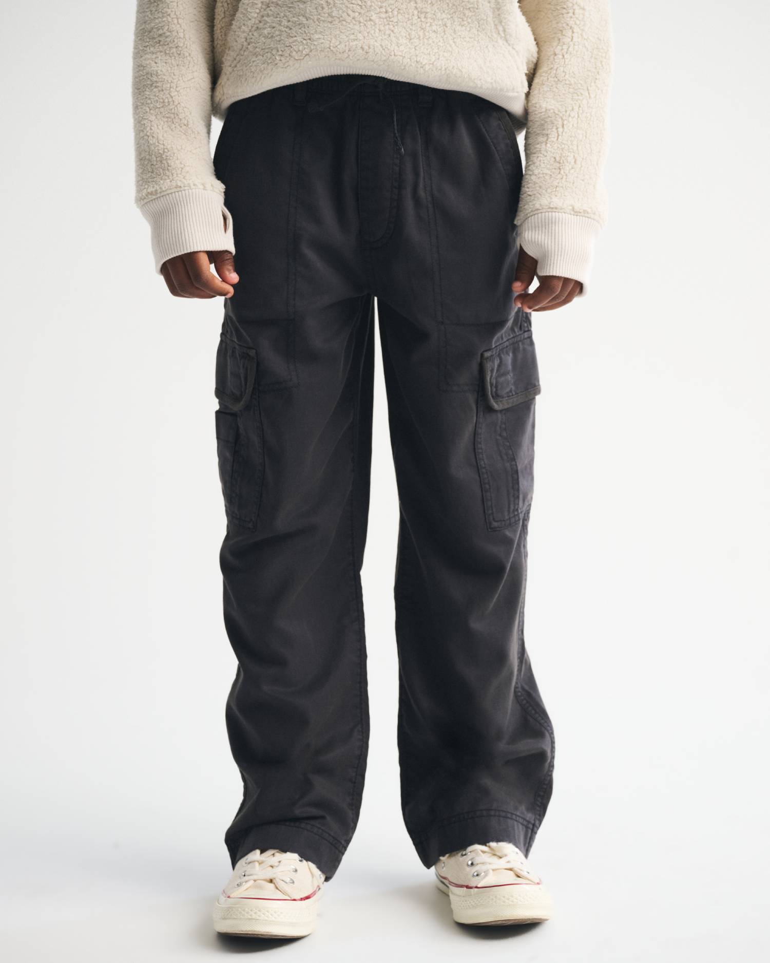 Comfortable pull-on style pants in a soft cotton-blend fabric, with a baggy fit throughout the leg. Features cargo-style pockets, a pull-on style elasticated waistband, side pockets and exterior drawcords.?? Imported.