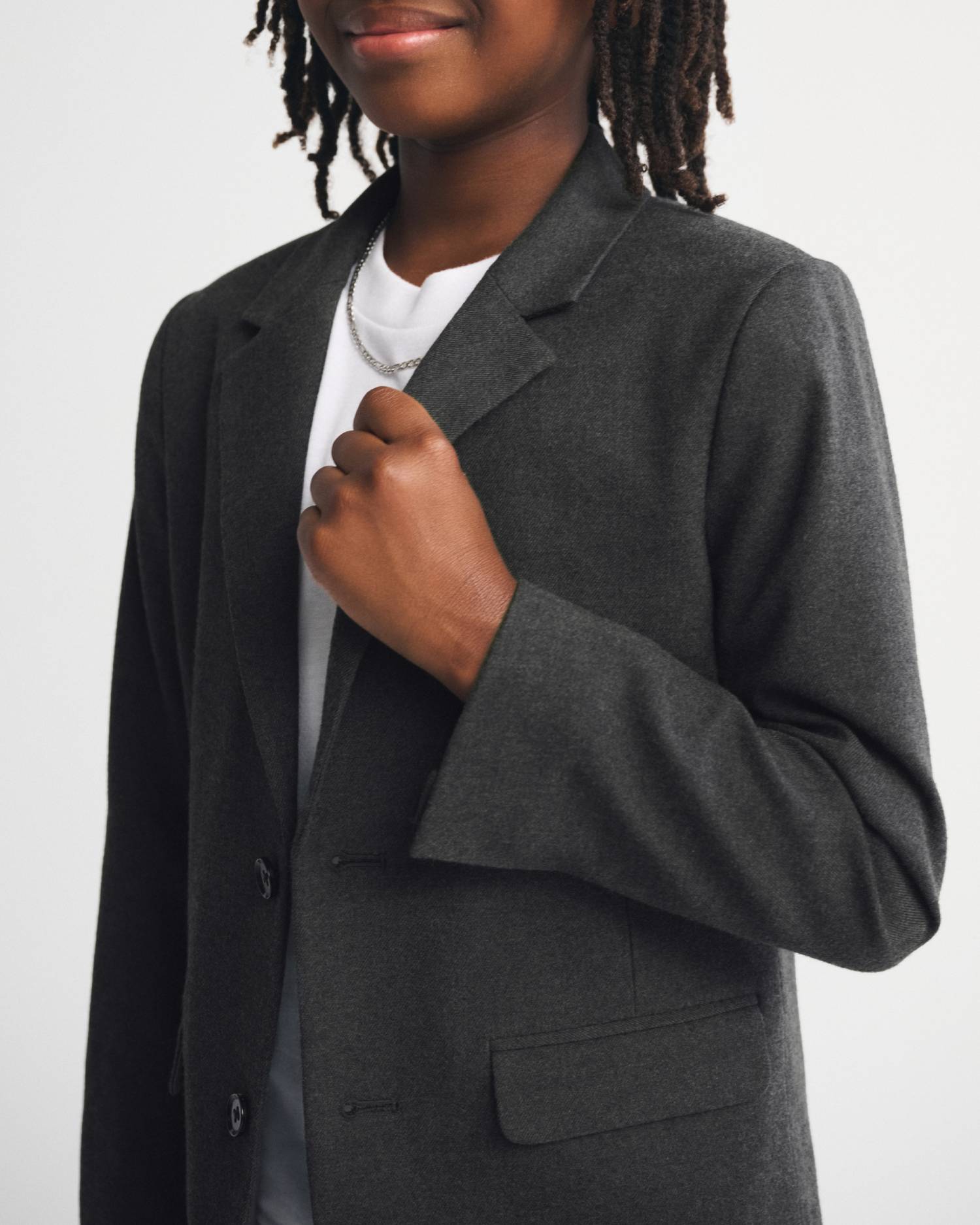 Our new single-breasted blazer in our everyday suiting fabric, with classic lapel collar, front button closure and front pockets. Imported.