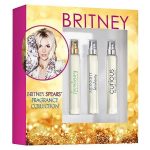 The Britney Spears Fragrance Gift Set includes three great fragrances. Fantasy combines succulent fruits and Britneys favorite white florals, leaving a light trail of sensuality. The alluring mix of lush red lychee, golden quince and exotic kiwi playfully intertwines with a delectable cupcake accord, jasmine petals and white chocolate orchid. A surprising finish of creamy musk, enchanted orris root and sensual woods will leave you captivated all day long. The Curious woman is romantic, independent and mischievous, one whos not afraid of risk. The scent is based on the notes of white flowers surrounded with vanilla and musk nuances. It opens with fresh lotus, mouthwatering pear and magnolia. Midnight Fantasy is the fragrance that puts you at center stage. The casual, citrusy scent has a moderate, fruity bouquet that fits women of all ages.