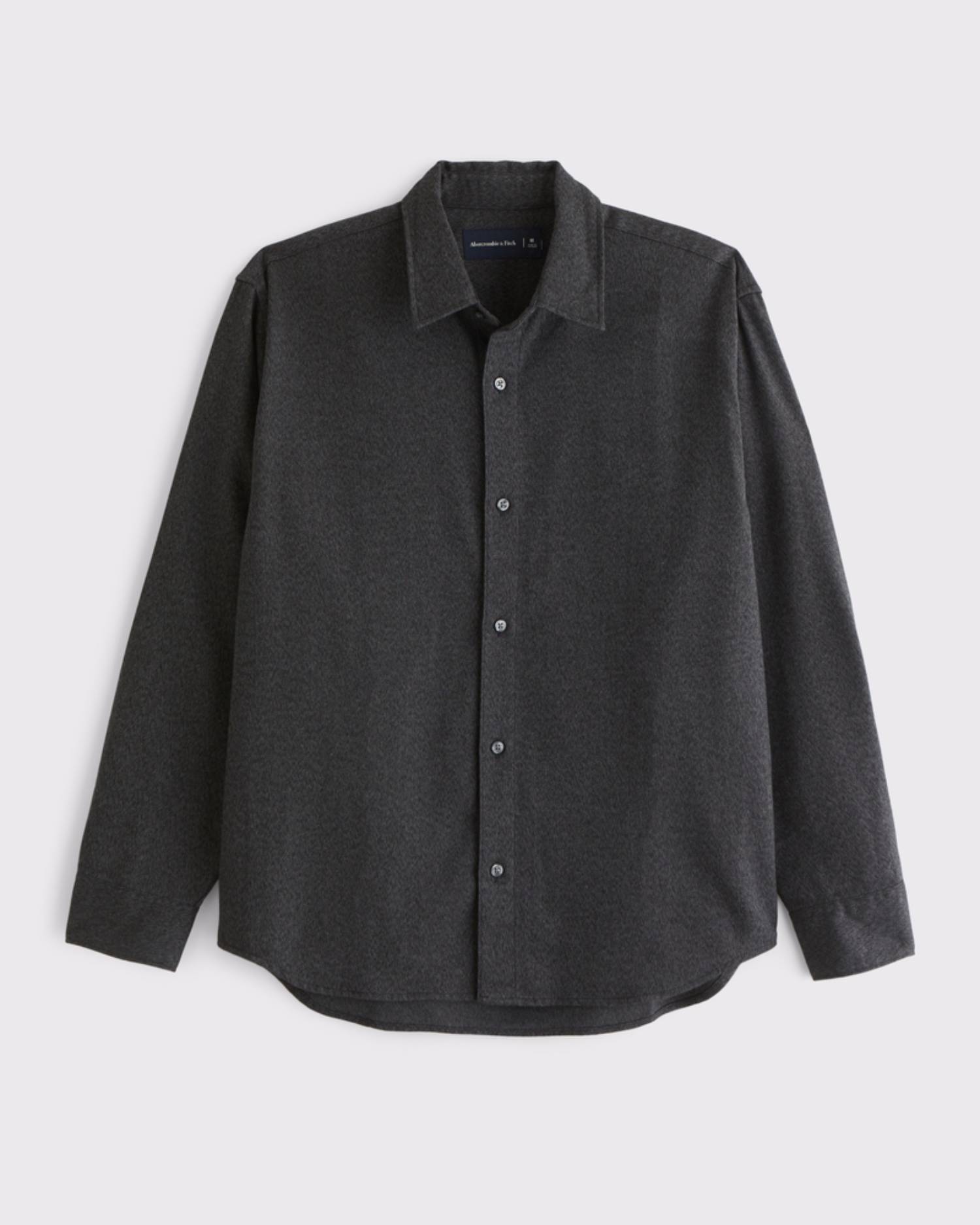 Our new long-sleeve button-up shirt in our new, soft to the touch brushed fabric, that can be dressed up or down. Features a relaxed-fit silhouette, classic collar and curved hem. Imported.