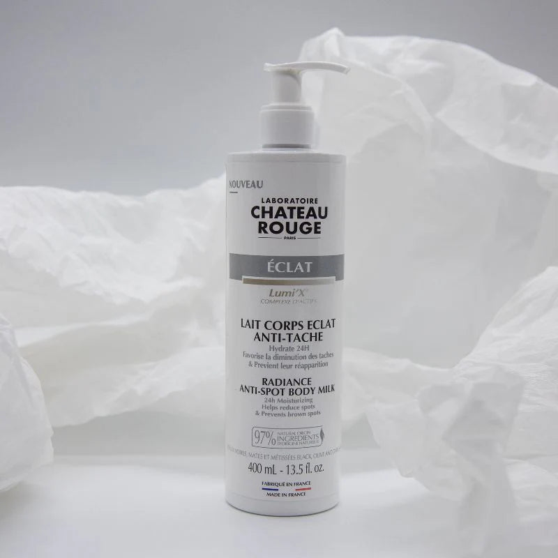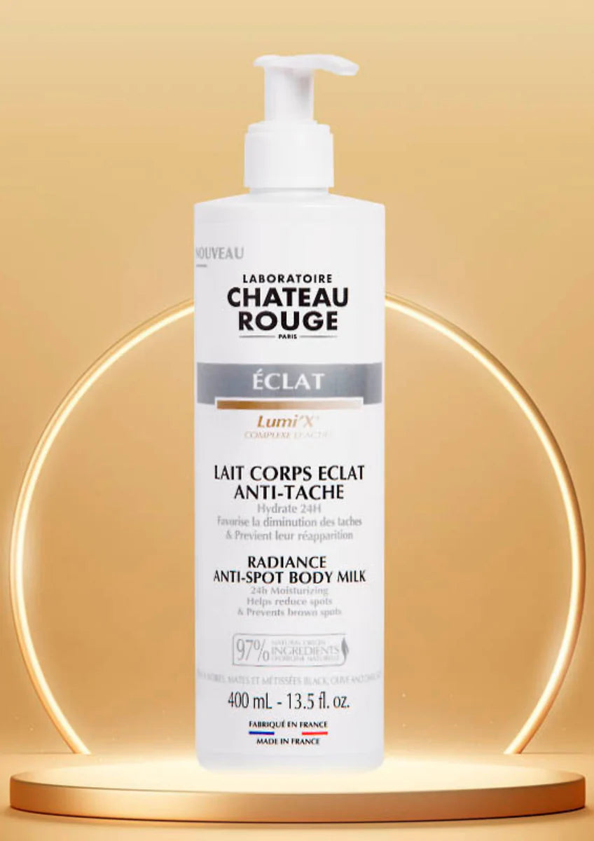 THEANTI-SPOT RADIANCE BODY MILK?harmonizes your skin tone and hydrates it. Its complex of naturally derived active ingredients corrects?pigmentation problems of various origins?and significantly reduces spots from the 4th week of use. The skin is better?hydrated,?softer, and more?radiant!