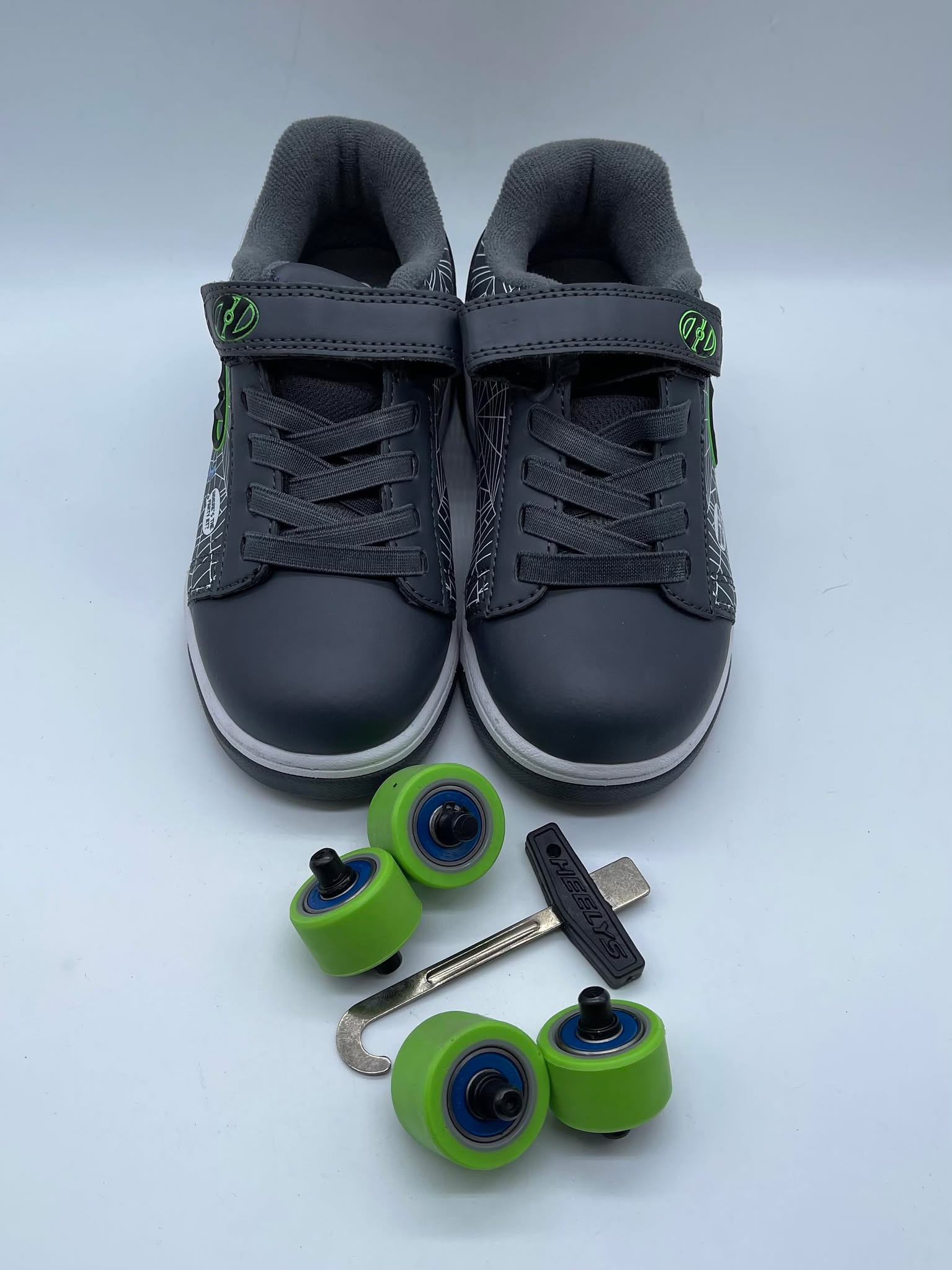 Details: Children’s dark grey with green trim, Heelys shoes. ( As Is / In Original Packaging )
