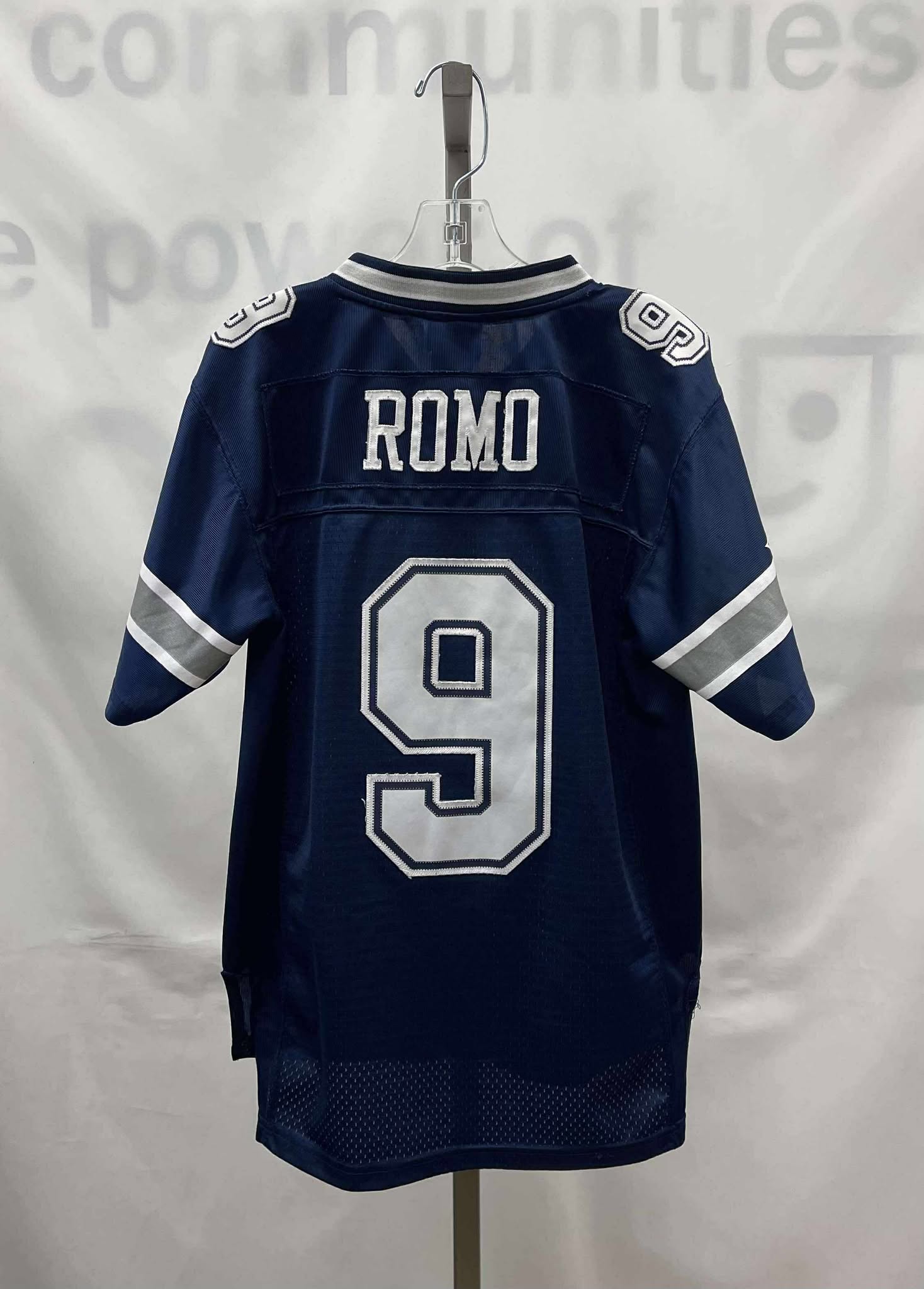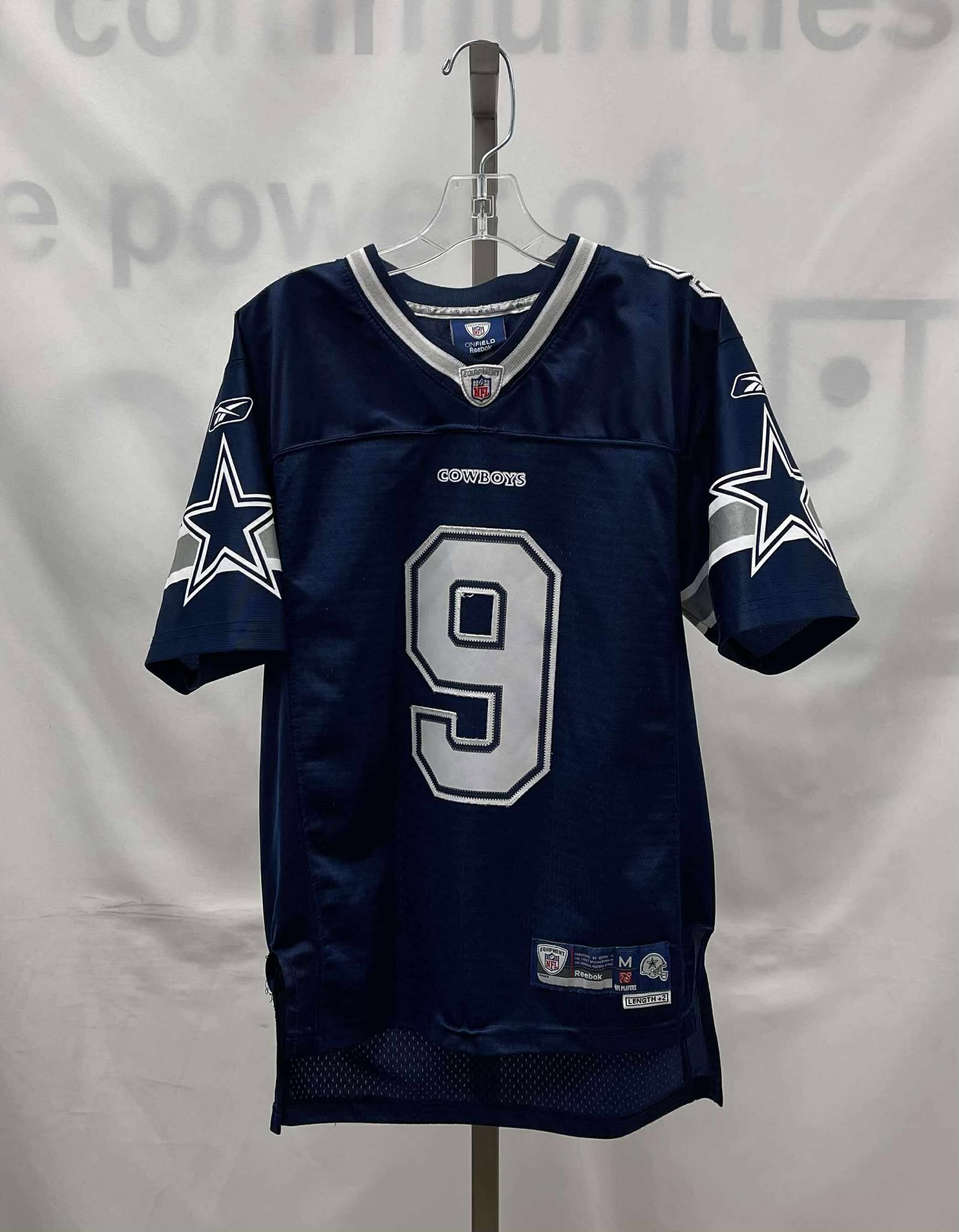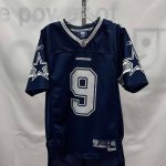 Details: Children’s midnight blue, with white and silver branding, short sleeve, #9 Dallas Cowboys Reebok jersey.?