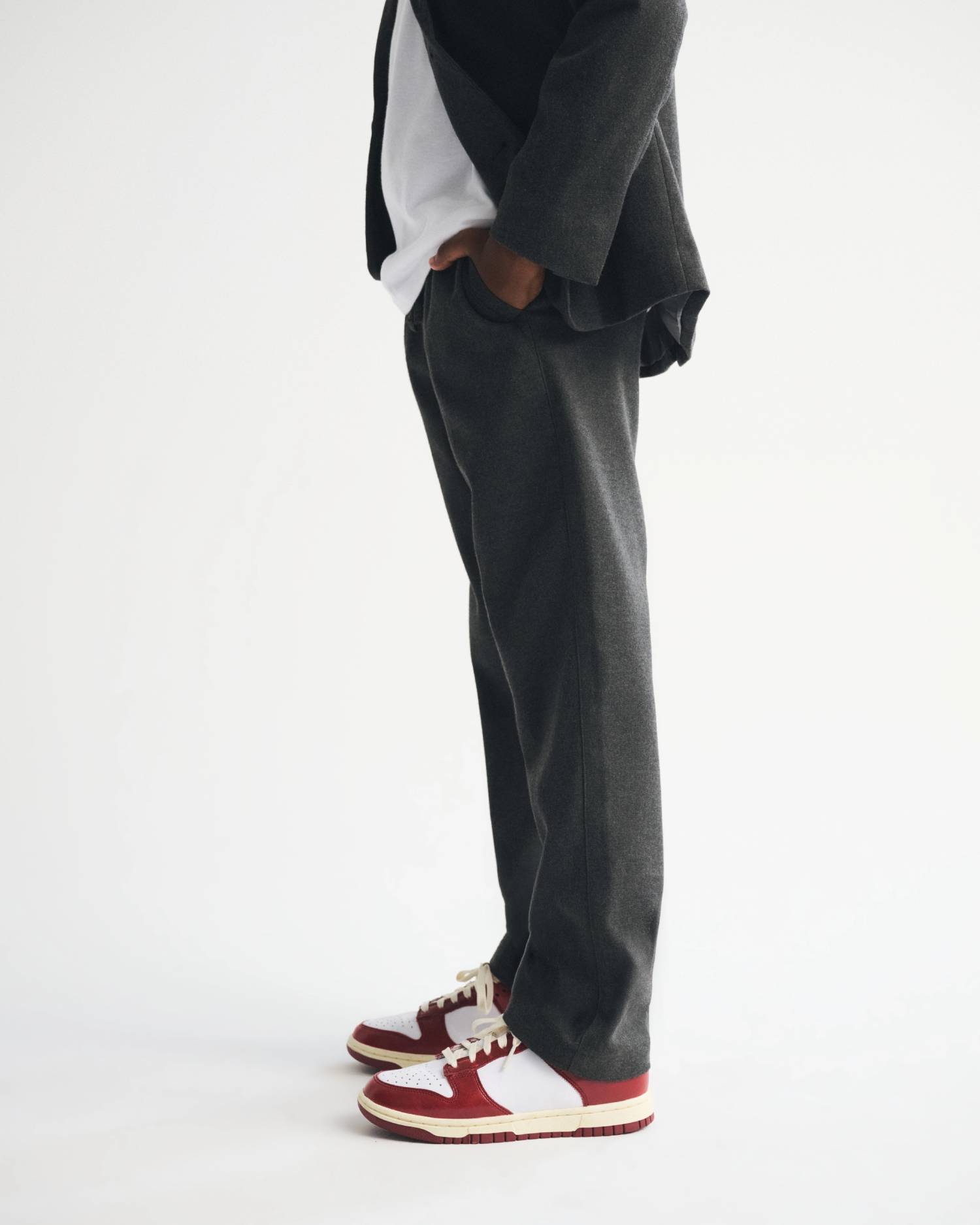Our comfortable new pants in our brushed tailoring fabric and loose fit. Features an elasticated drawstring waistband, side pockets and back pockets. Imported.