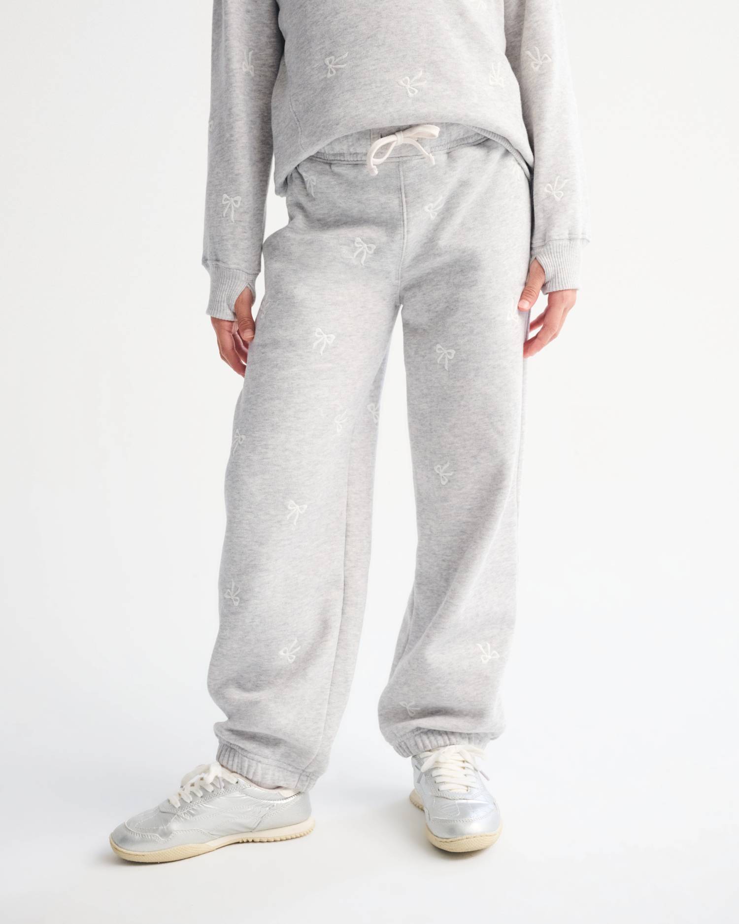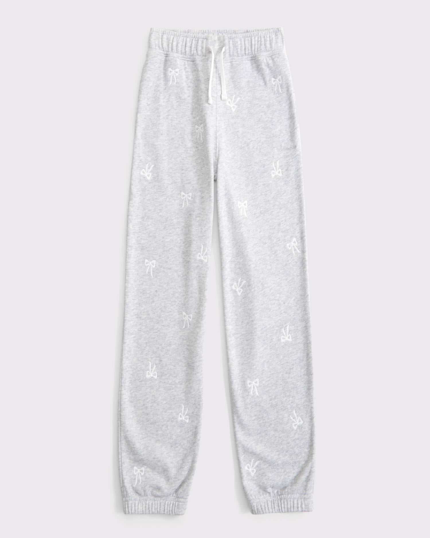 High rise sweatpants in our soft fleece fabric, with embroidered bow details throughout, pockets, banded cuffs and drawstring waist. Imported.