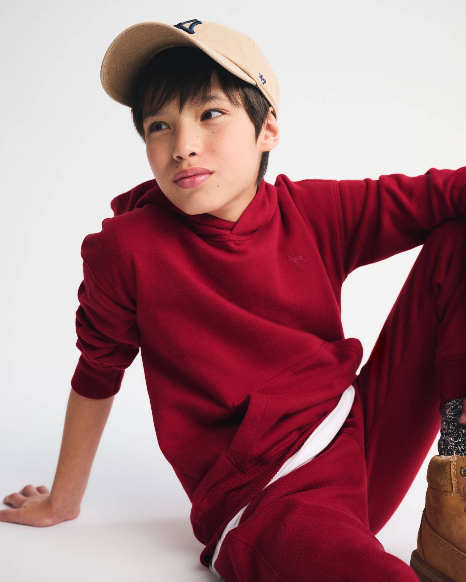 Comfy popover hoodie in a soft fleece fabric with embroidered icon at left chest, front pouch pocket, ribbed hem and thumbholes at cuffs. Imported.