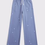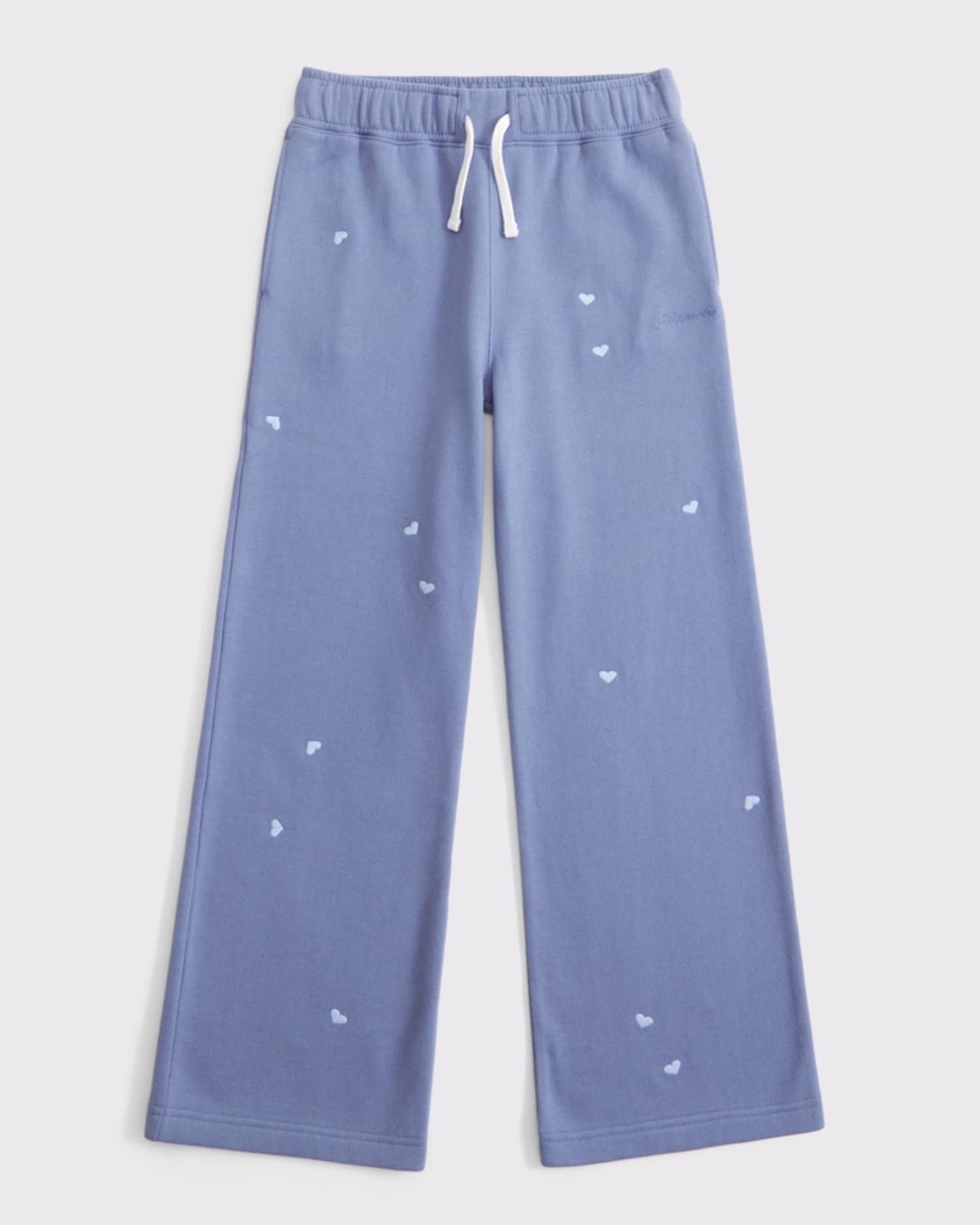 High rise wide leg sweatpants in our super soft fleece fabric, featuring small logo detail, all-over embroidered heart pattern, drawstring waist and side pockets. Imported.
