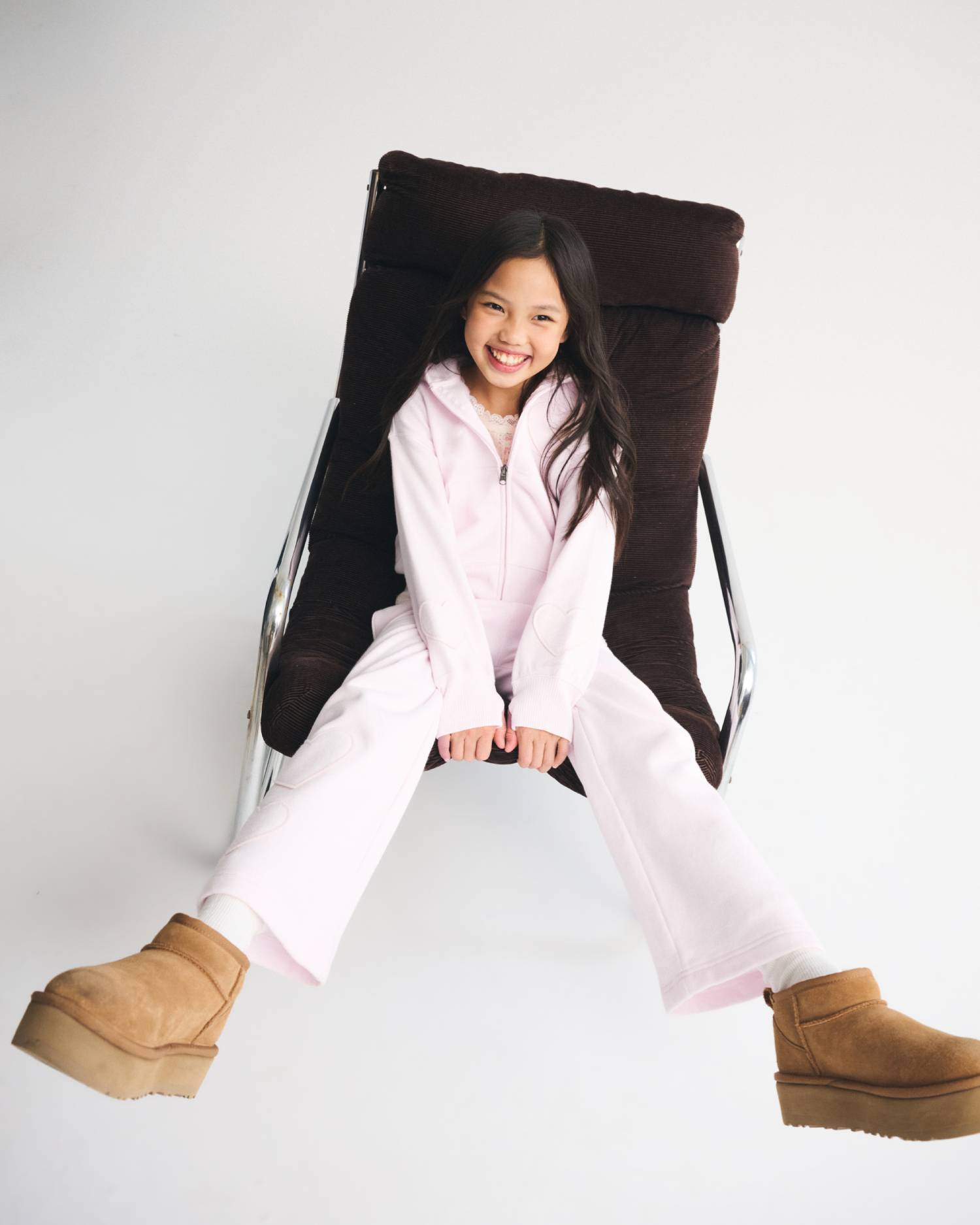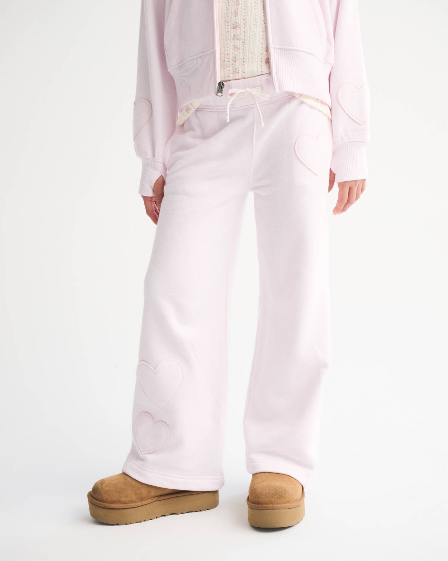 High rise wide leg sweatpants in our super soft fleece fabric, featuring small logo detail, drawstring waist and side pockets. Imported.
