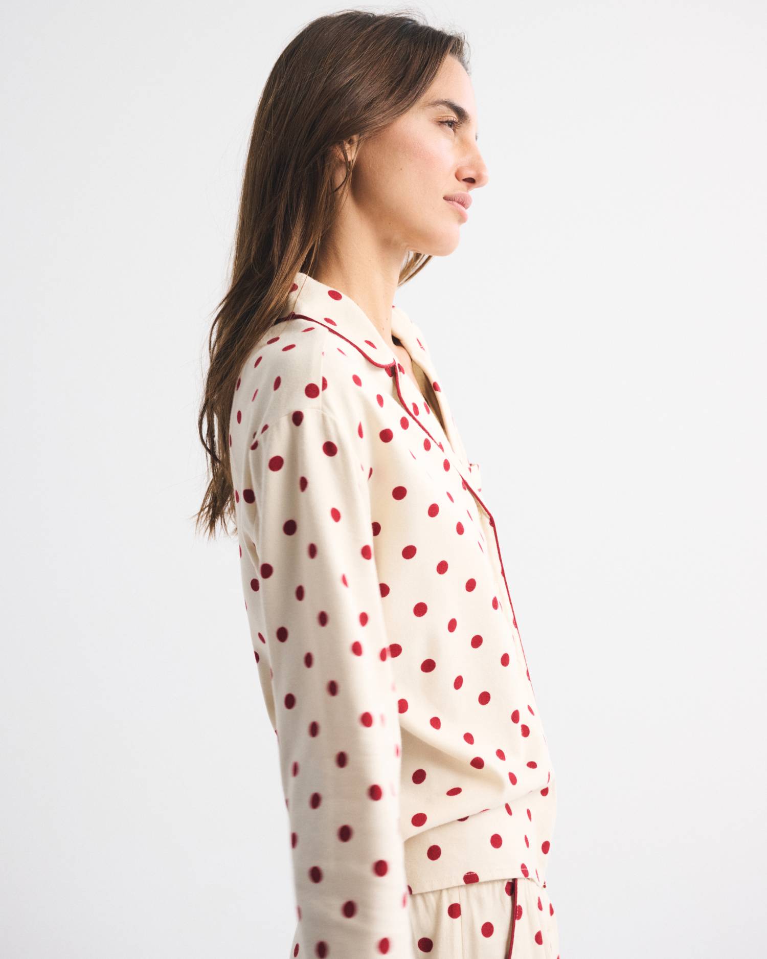 Easy-fitting long-sleeve sleep shirt in our softAF flannel fabric and relaxed-fit silhouette. Features a classic collar, velvet trim details, button-up front and left chest pocket. Imported.