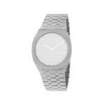 The GUCCI 25H’s streamlined silhouette was inspired by the sleek forms of contemporary architecture. The watch is presented with a thin multi-layer case and five-link steel bracelet while the design is completed by the House’s monogram logo. The name, GUCCI 25H, is attributed to a particularly symbolic talisman for Creative Director Alessandro Michele.