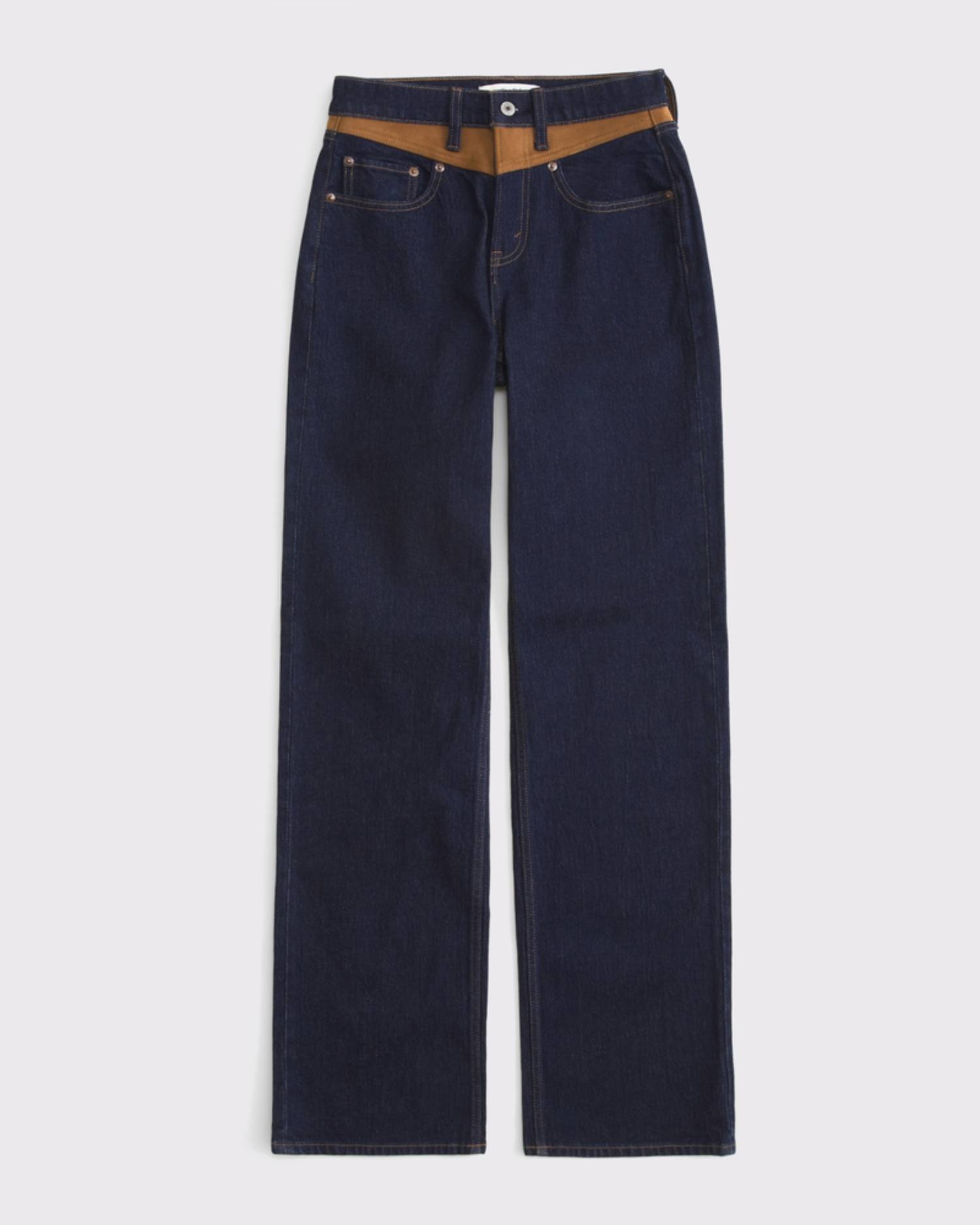 Our classic 90s relaxed fit in a rinsed wash, with vegan suede mixing and a clean hem. Features a high rise that is fitted at the waist through the seat to show off your best butt. Eases open through the thigh into a full-length, relaxed leg shape. Made from our Vintage Comfort Stretch fabric with structure and slight stretch. Imported.