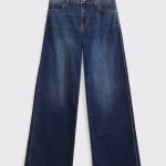 Our new high rise wide leg fit jeans, in a dark wash, with rhinestone details at the hem, functional pockets and waistband adjusters in all sizes. Imported.