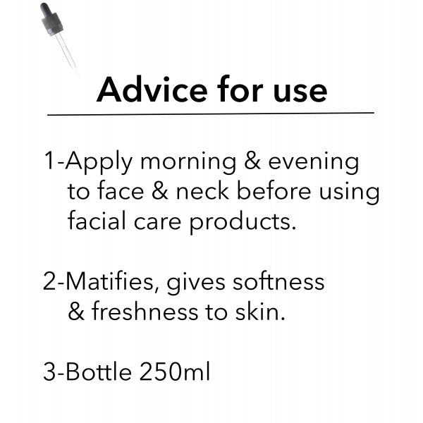This vitamin-enriched toning lotion mainly consists of flower water. It has a cleansing effect on the skin due to the presence of an active substance well known for its bactericidal properties.