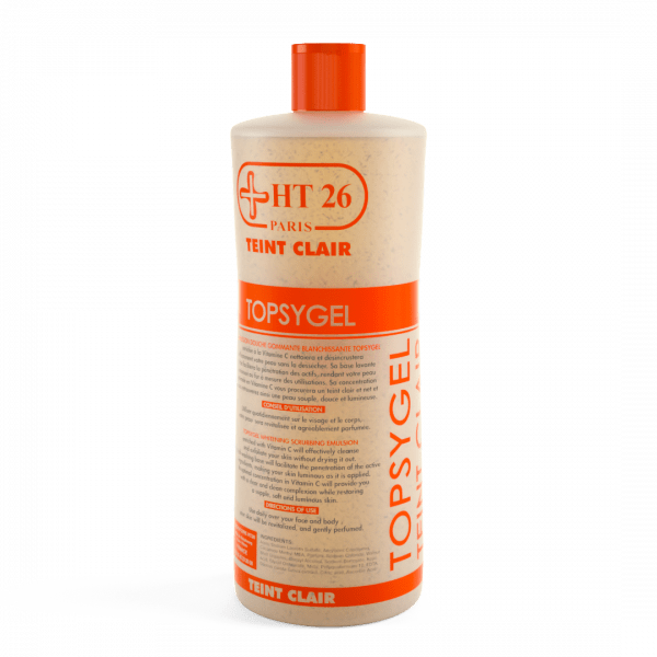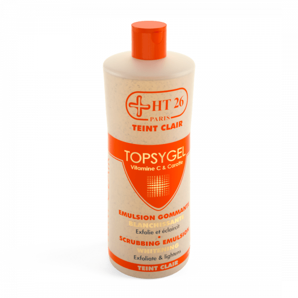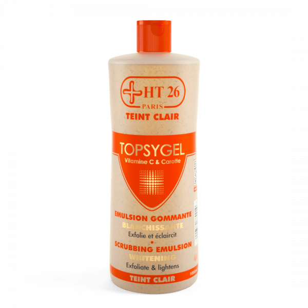 HT26 Topsygel – Scrubbing emulsion Lightening 100ml: Exfoliates and lightens!?Complexion radiance,?Carrot & Vitamin C,?Family size 1L