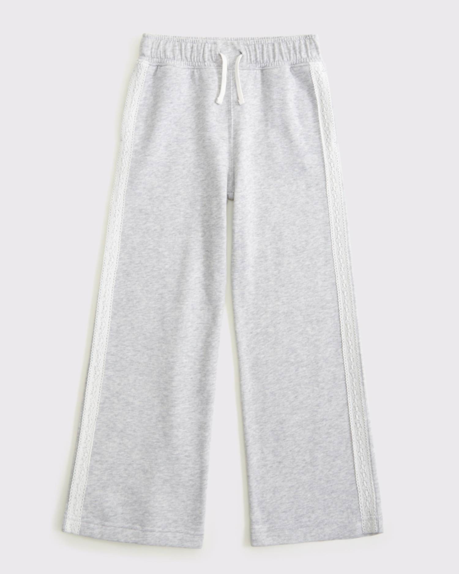 High rise wide leg sweatpants in our super soft fleece fabric, featuring lace-trim detail down the legs, drawstring waist and side pockets. Imported.