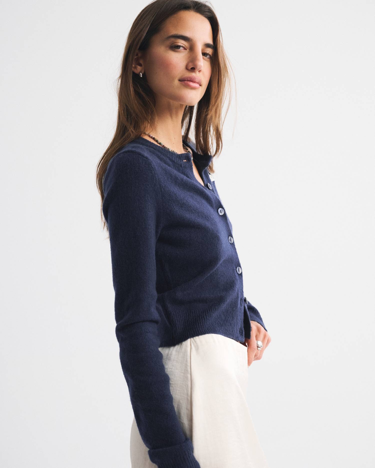 Body-skimming cardigan in our super soft sweater yarn fabric and shrunken silhouette. Features embroidered logo detail at left chest, a crew neckline, button-up front and rib trims along the neckline, cuffs and hem.?? Imported.