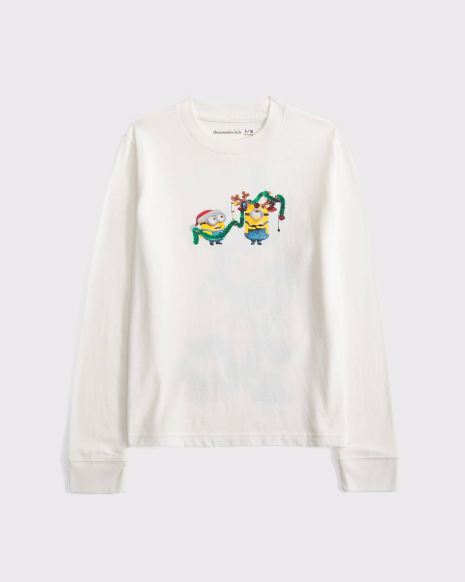 Comfortable long-sleeve tee in a soft cotton-blend fabric, with Minions graphic detail at chest and back and crew neckline. Imported.
