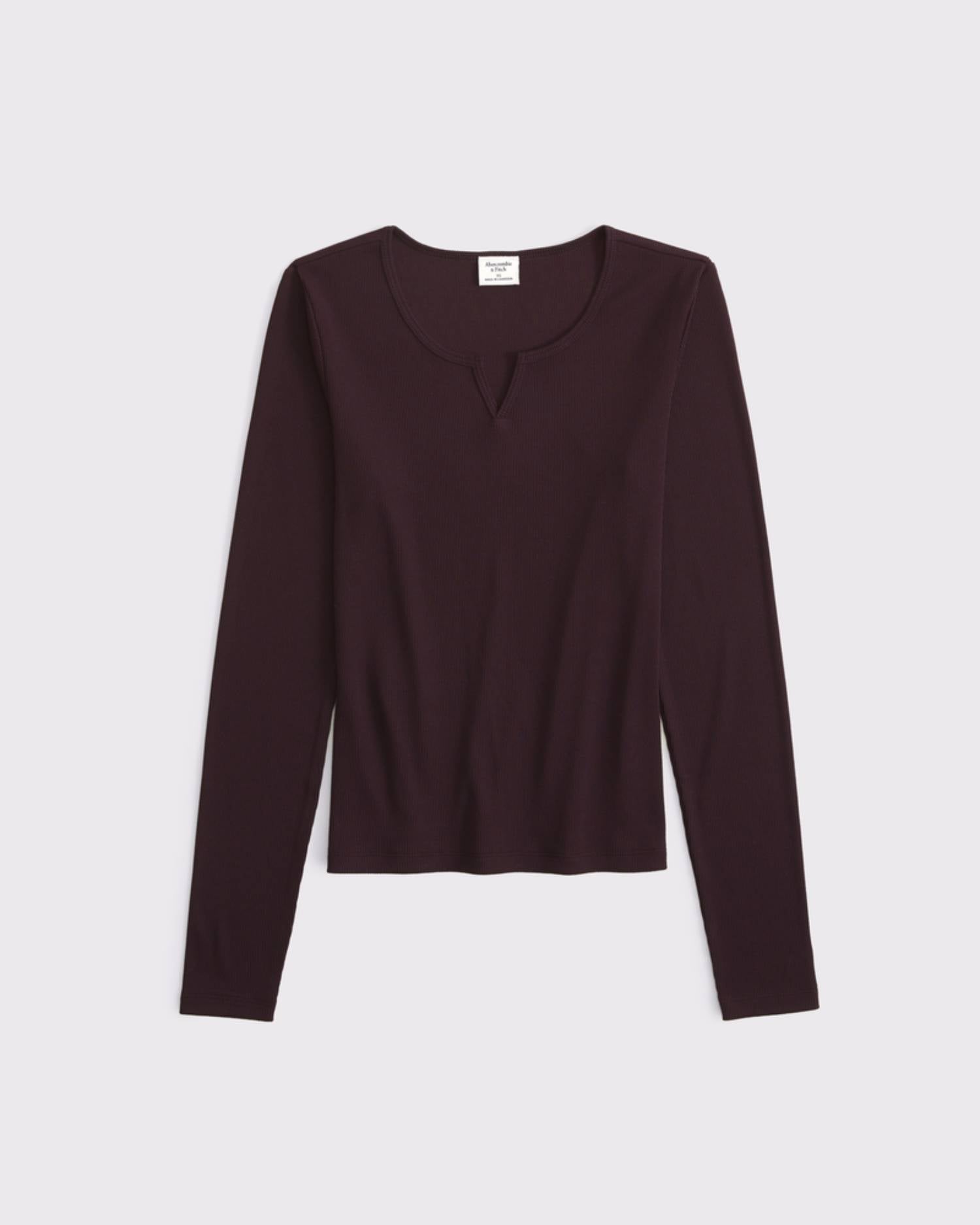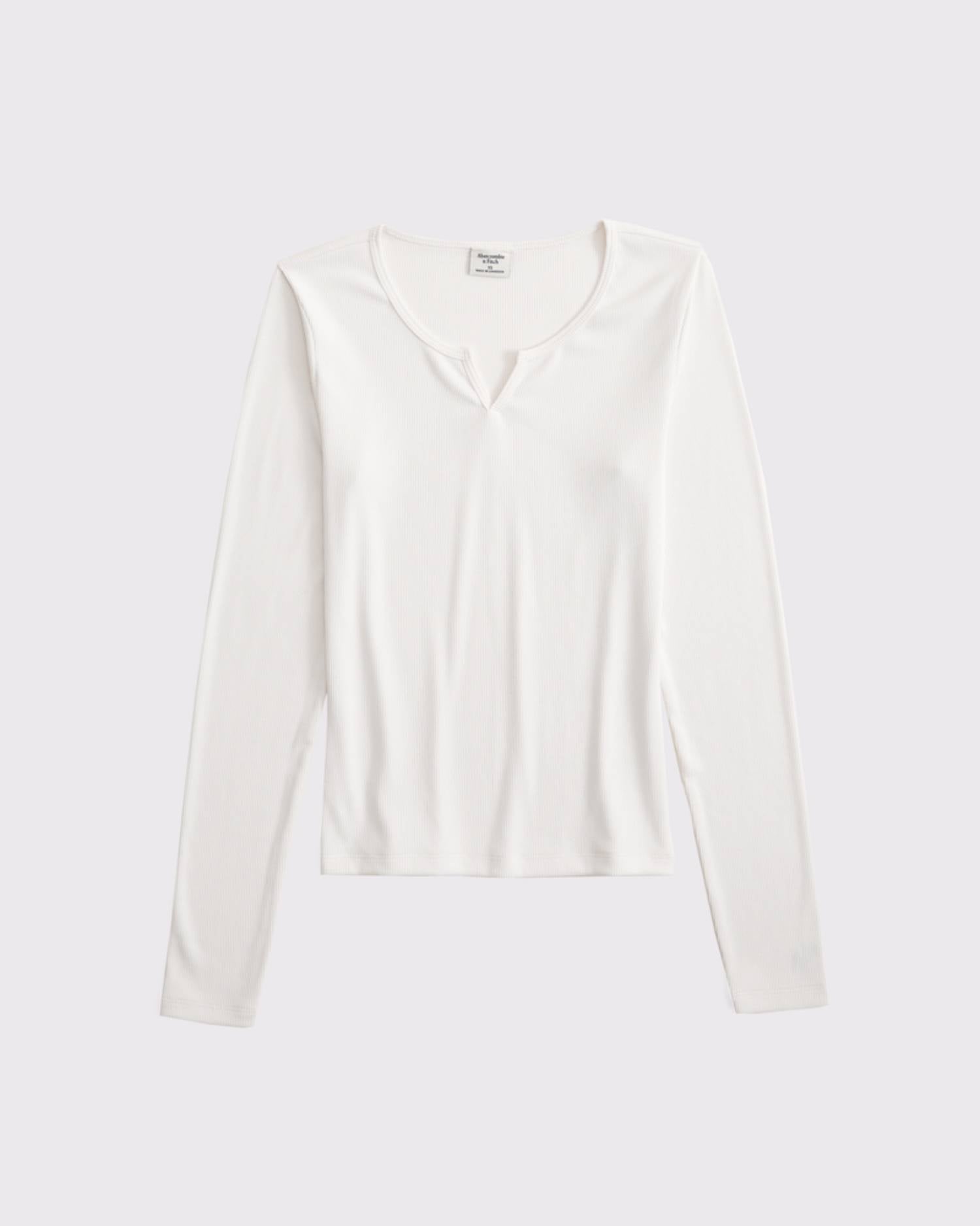 Slim-fitting long-sleeve top in our softAF rib fabric, featuring a notched neckline, all-over ribbed detail and straight hem. Imported.