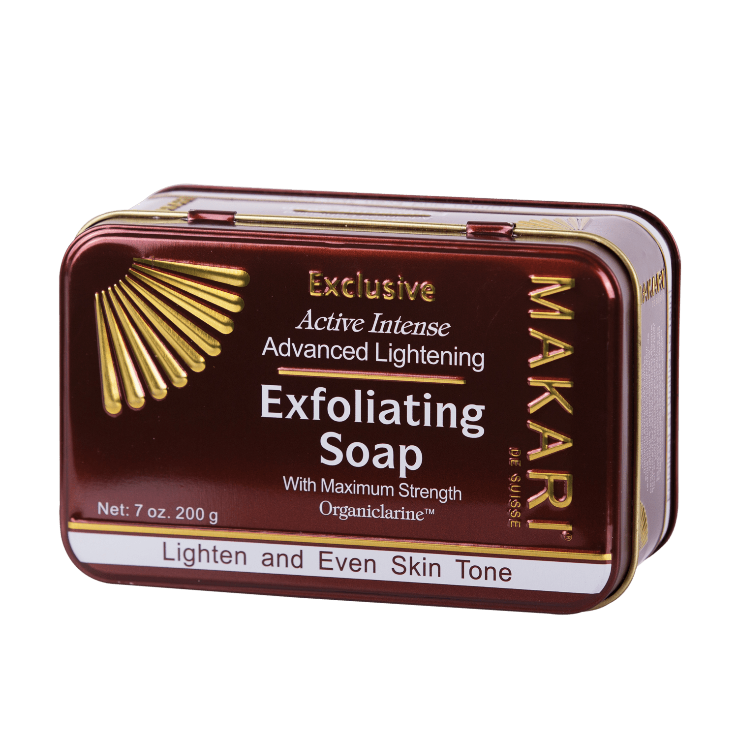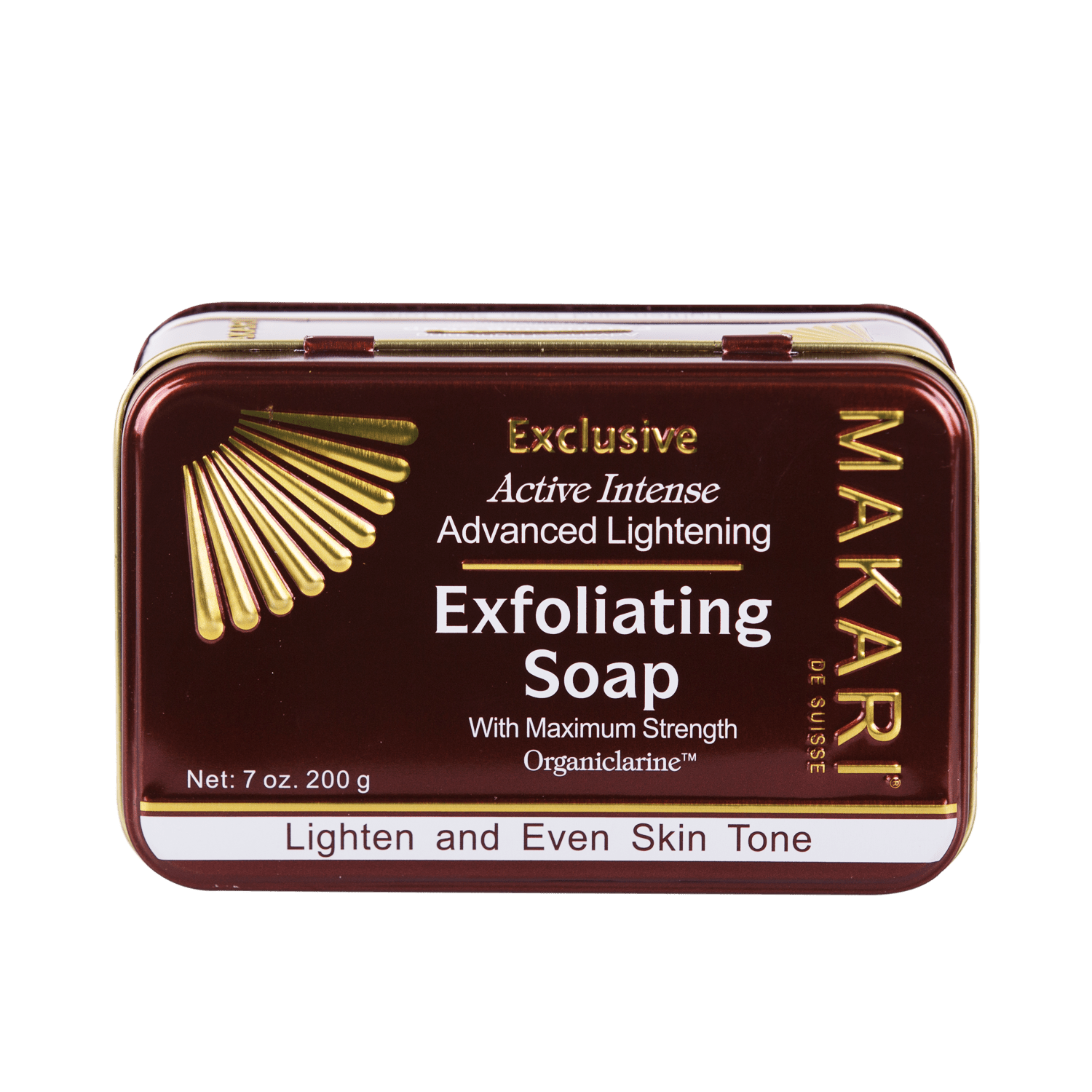 MAKARI EXCLUSIVE – TONING Soap Unveil luminous skin with this advanced whitening exfoliating bar. This bleaching alternative cleanses impurities, exfoliates dull, dead skin and promotes a clear, unified skin tone.