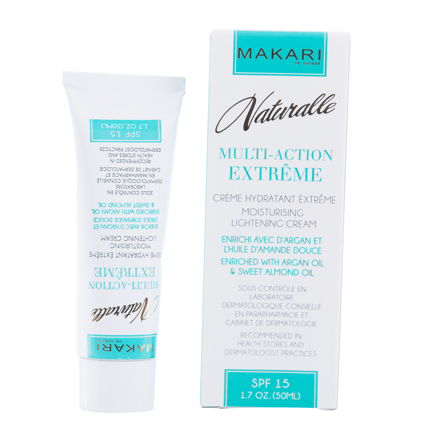 ?MAKARI – MULTI-ACTION EXTREME TONING CREAM SPF 15 Moisturizes. Smooths lines. Boosts radiance.? For sensitive to dry skin typesMakari multi-action lightening Cream is a hydrating SPF cream moisturizer replenishes dry skin with a skin-silkening blend of botanicals that softens lines, smooths texture, plumps skin and protects against free radicals revealing a more toned, resilient glow.