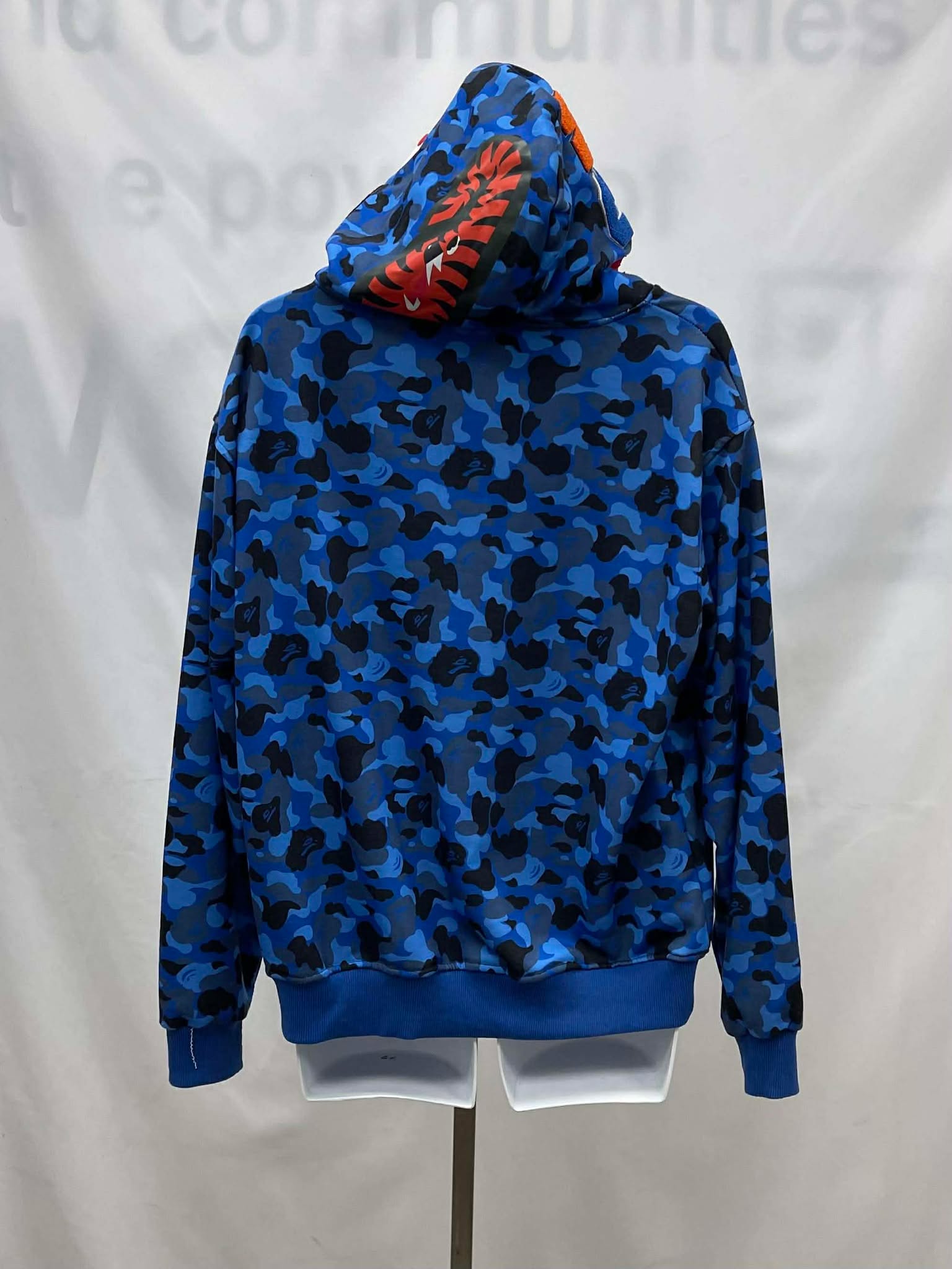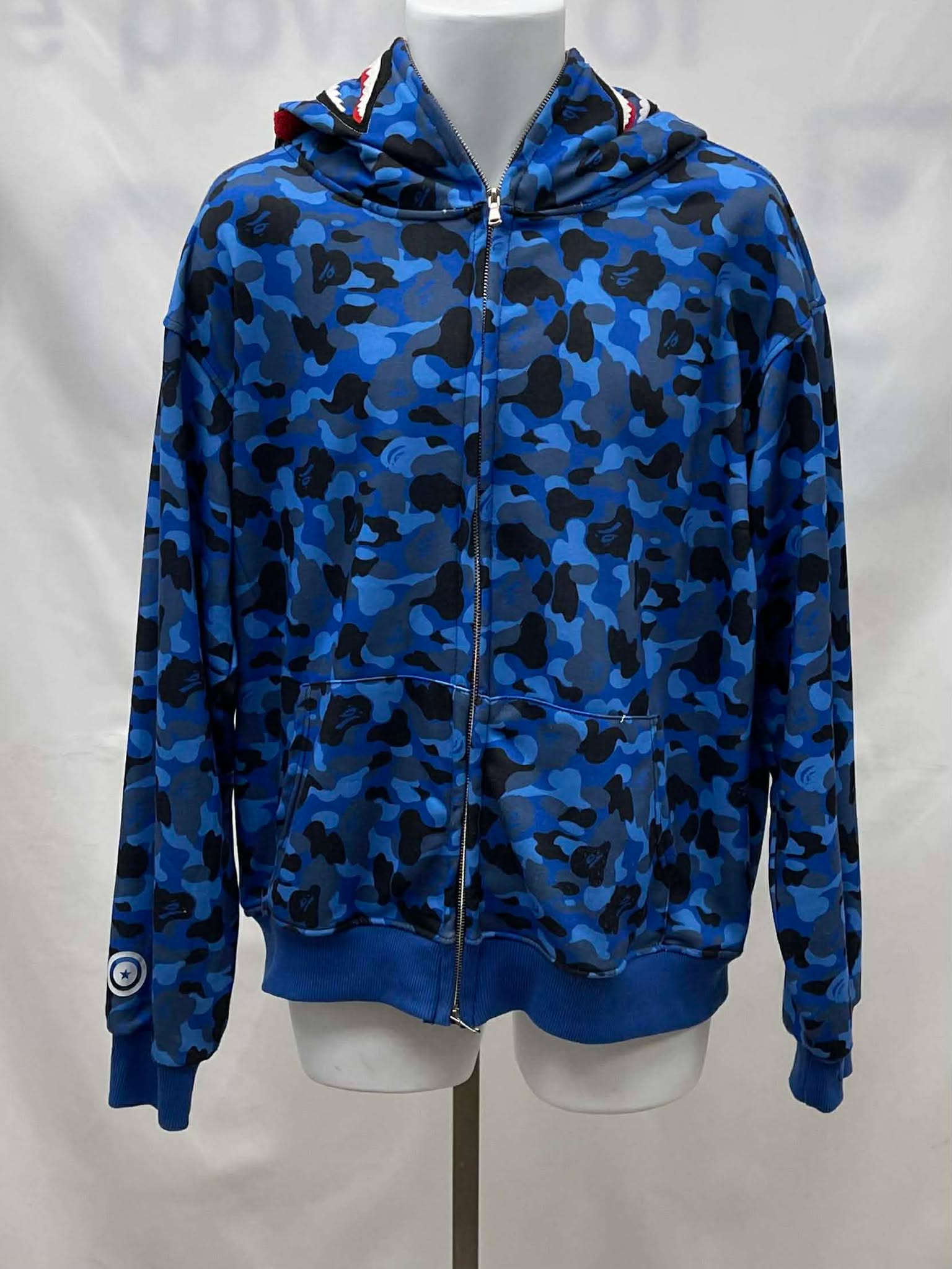 Details: Men’s blue camouflage, long sleeve ‘A Bathing Ape’ hoodie. ( As Is / Not Authenticated )