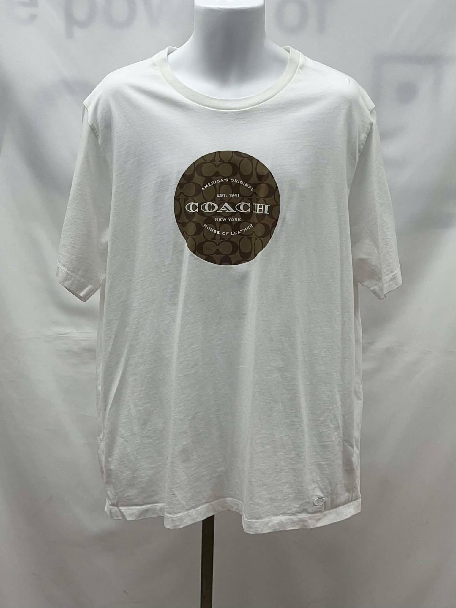 Details: Men’s white with front logographic, short sleeve Coach top. ( As Is / Not Authenticated )