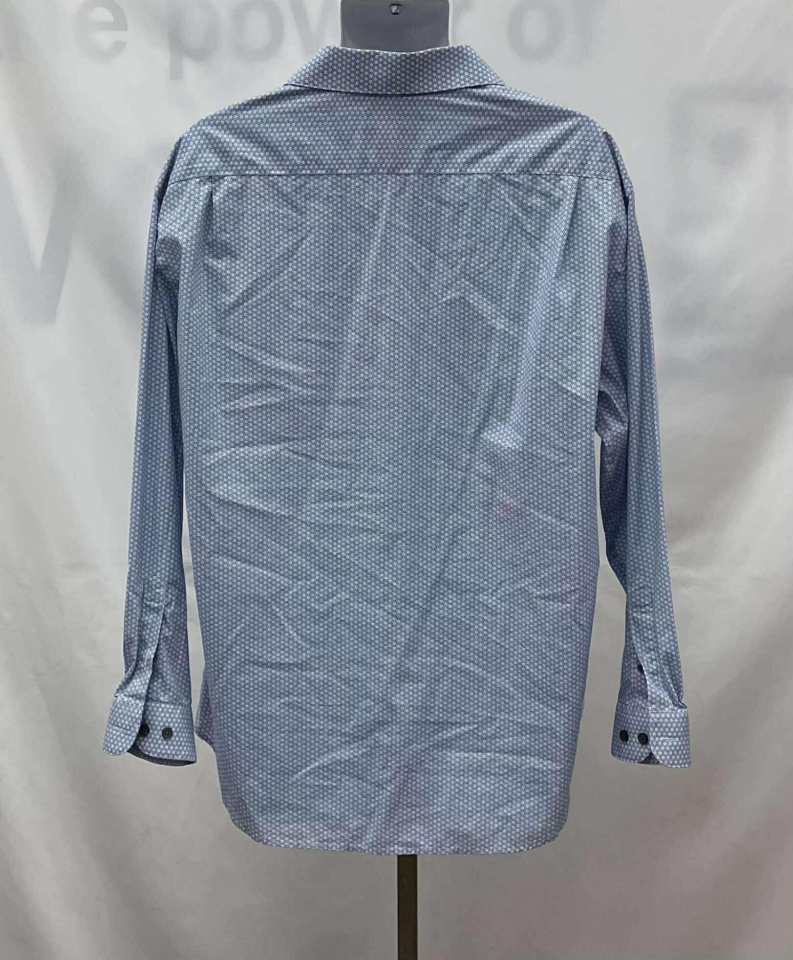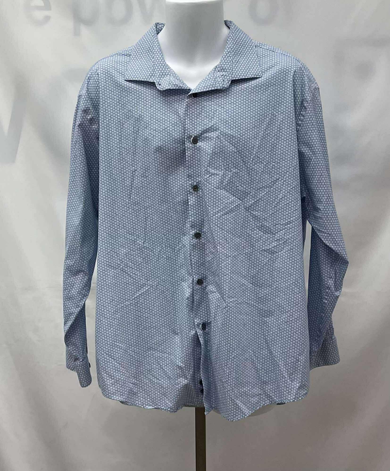 Details: Men’s white and blue patterned, collared, long sleeve Kenneth Cole shirt. ( As Is / Worn )