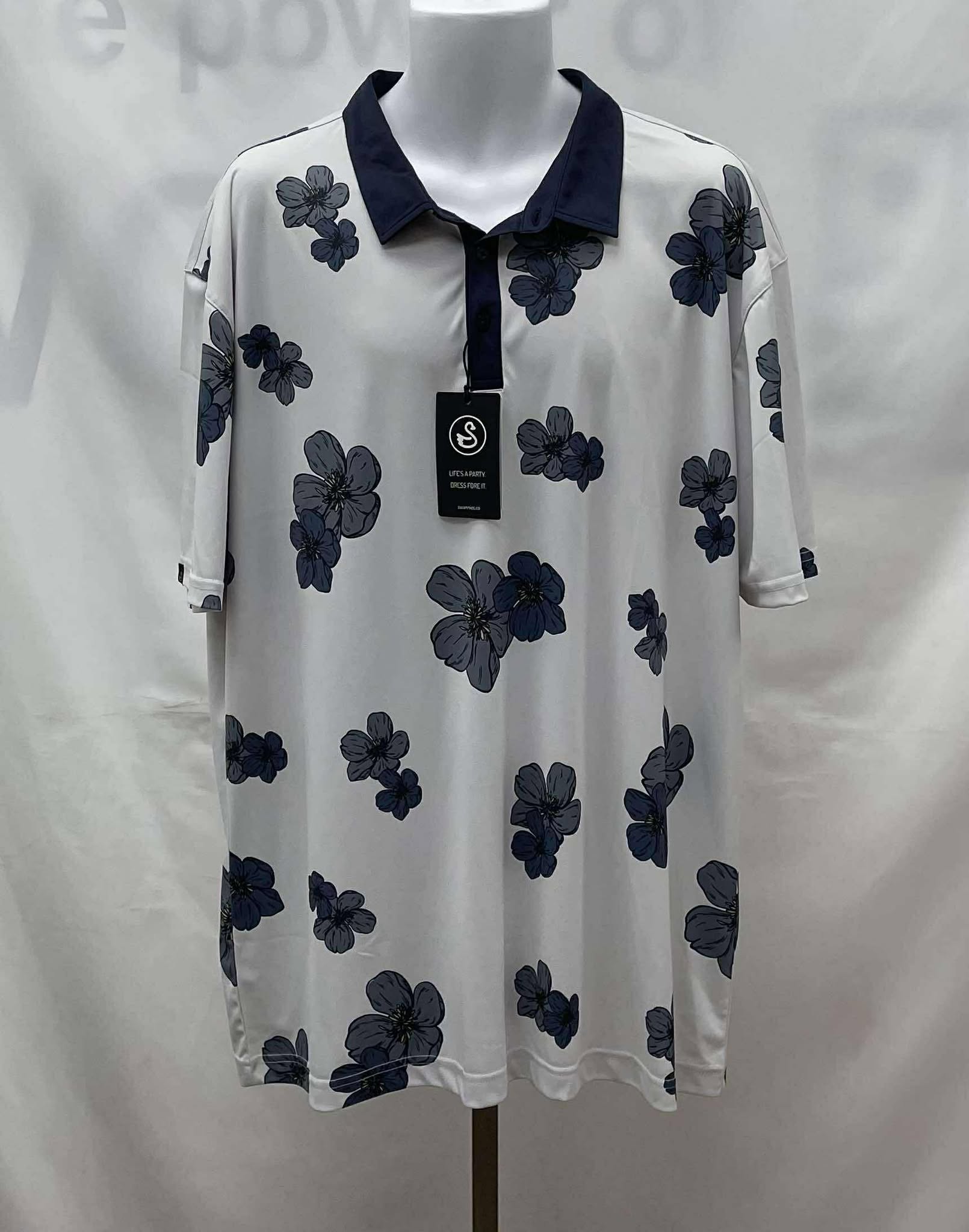 Details: Men’s white with blue floral print, collared short sleeve Swannies shirt. ( With Original Tag )