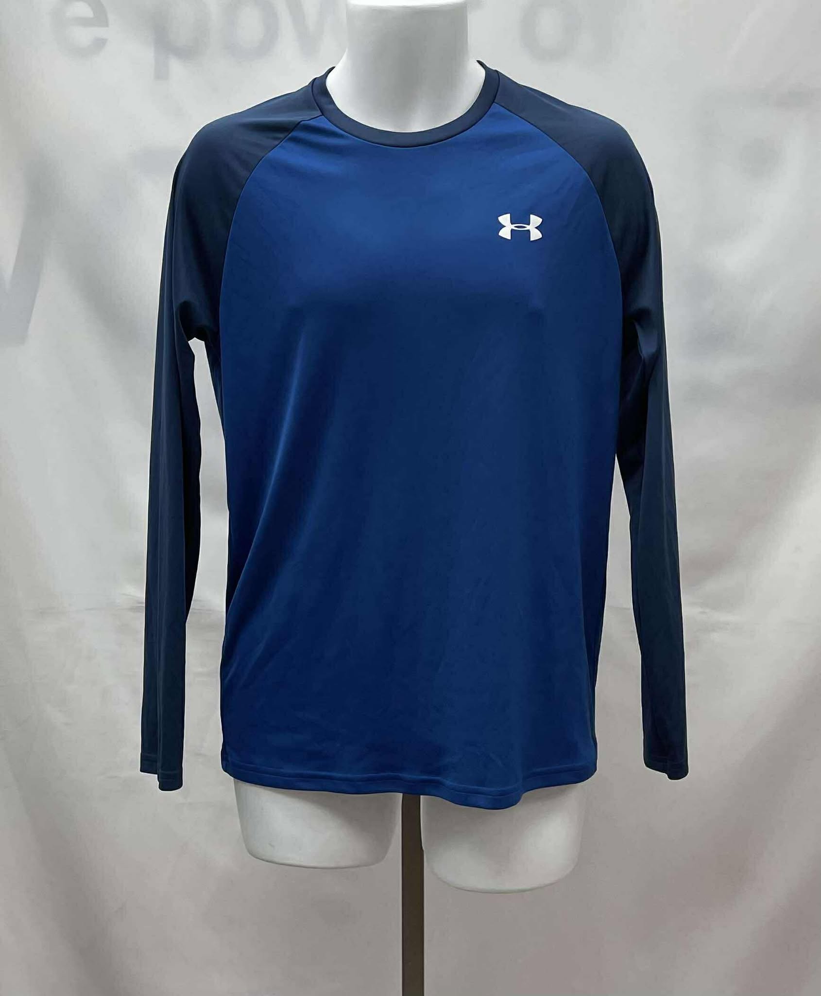 Details: Men’s two tone blue, long sleeve Under Armour top.