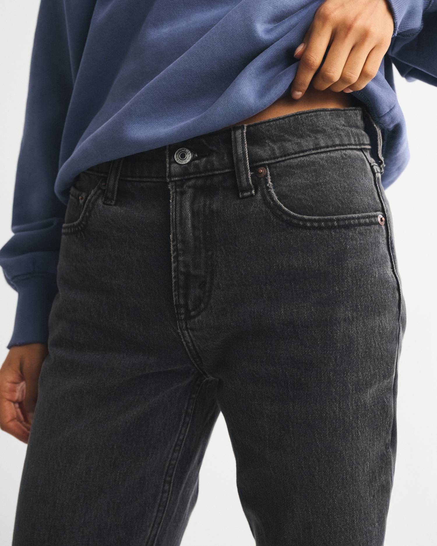 Our classic 90s straight fit in a black wash with a clean hem. Features a mid rise that is fitted at the waist through the seat to show off your best butt. Slightly eases at the thigh into a true full-length, straight leg shape. Made from our Vintage Comfort Stretch fabric with structure and slight stretch. This jean was designed to hit at the top of the shoe. Imported.