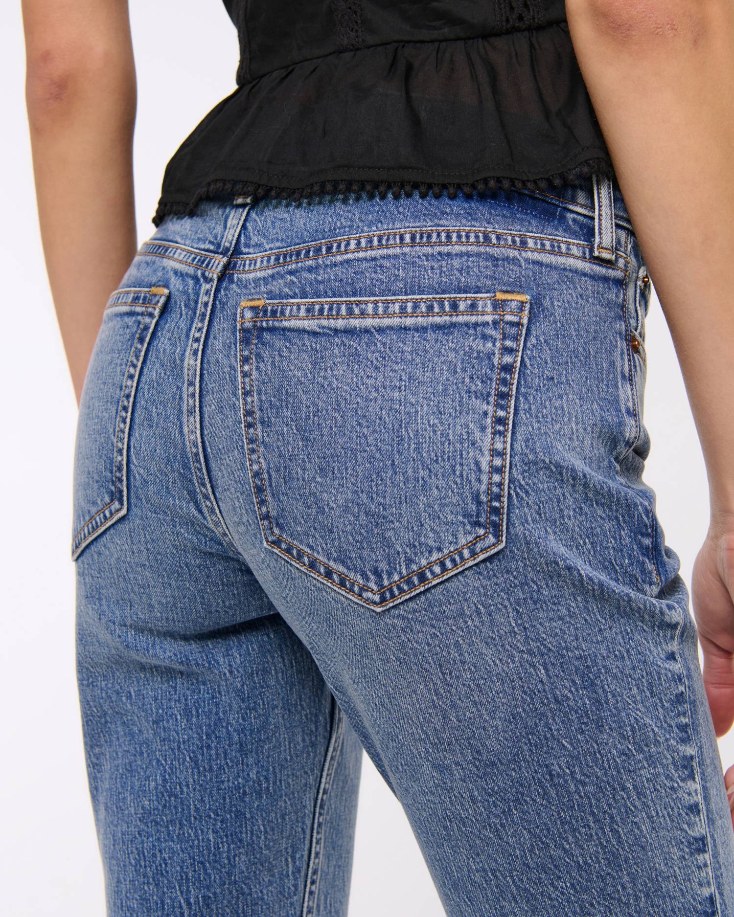 Our classic bootcut fit in a M wash with a frayed hem. Features a mid rise that is slim through the hip, seat and thigh to show off your best butt. Slightly flares at the calf into a full-length, bootcut leg shape. Made from our Signature Stretch fabric with superior comfort and stretch. This jean was designed to fit over a boot and hits at a full length over any shoe. Imported.