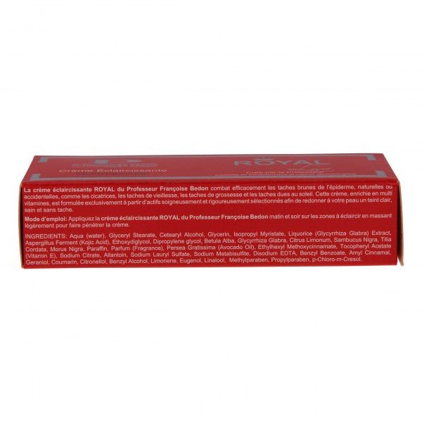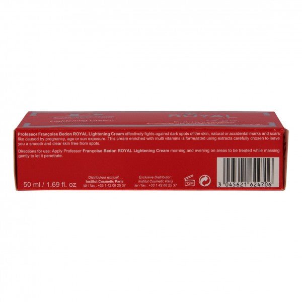 Pr. Francoise Bedon? Lightening Cream Royal 1.7oz: Soft facial lightening cream enriched with sweet almond extract . Brightens the complexion and helps cell renewal leaving the fresh more rejuvenated and youthful looking.