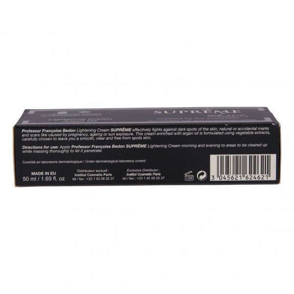 Pr. Francoise Bedon? Lightening Cream Supreme 1.7oz : Soft facial lightening cream enriched with sweet almond extract . Brightens the complexion and helps cell renewal leaving the fresh more rejuvenated and youthful looking.