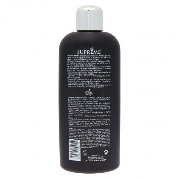 Pr. Francoise Bedon? Lightening Milk Supreme 16.8oz: This Formula treats and helps to eliminate scars and marks like caused by pregnancy, age or sun exposure. Moreover, it is enriched by particularly hydrating Sweet Almond Oil to restore epidermal lipids lost. It also contains Vitamin E to protect the skin from aging and free radicals.