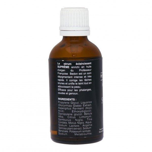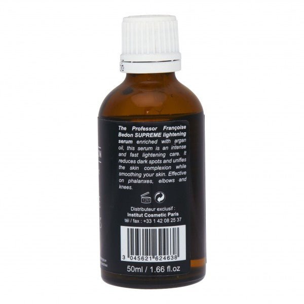 Pr. Francoise Bedon? Lightening Serum Supreme 1.66oz?is intense and very fast depigmentation care. It reduces the dark spots and unifies the tan. Active for phalanges, elbows, and knees.
