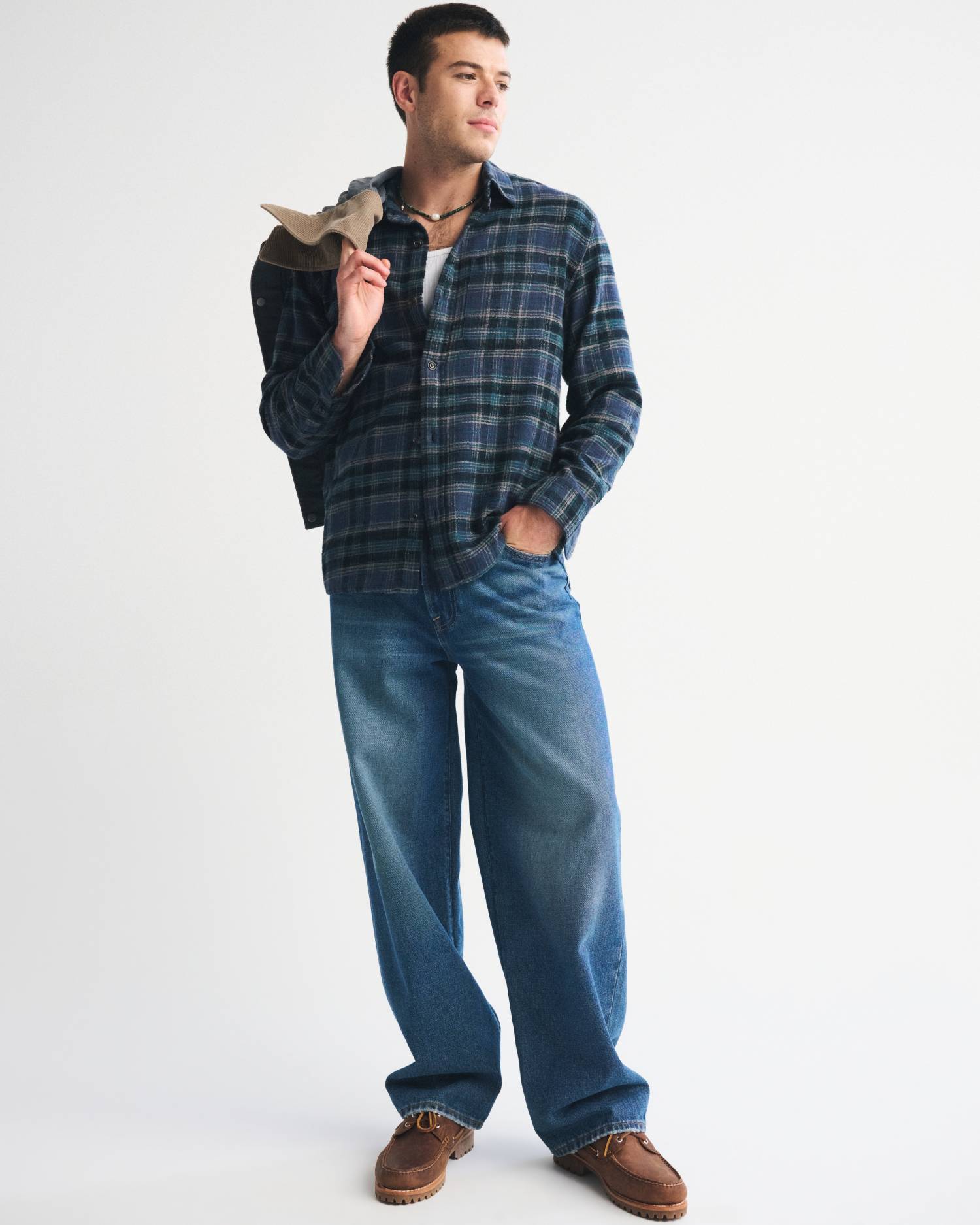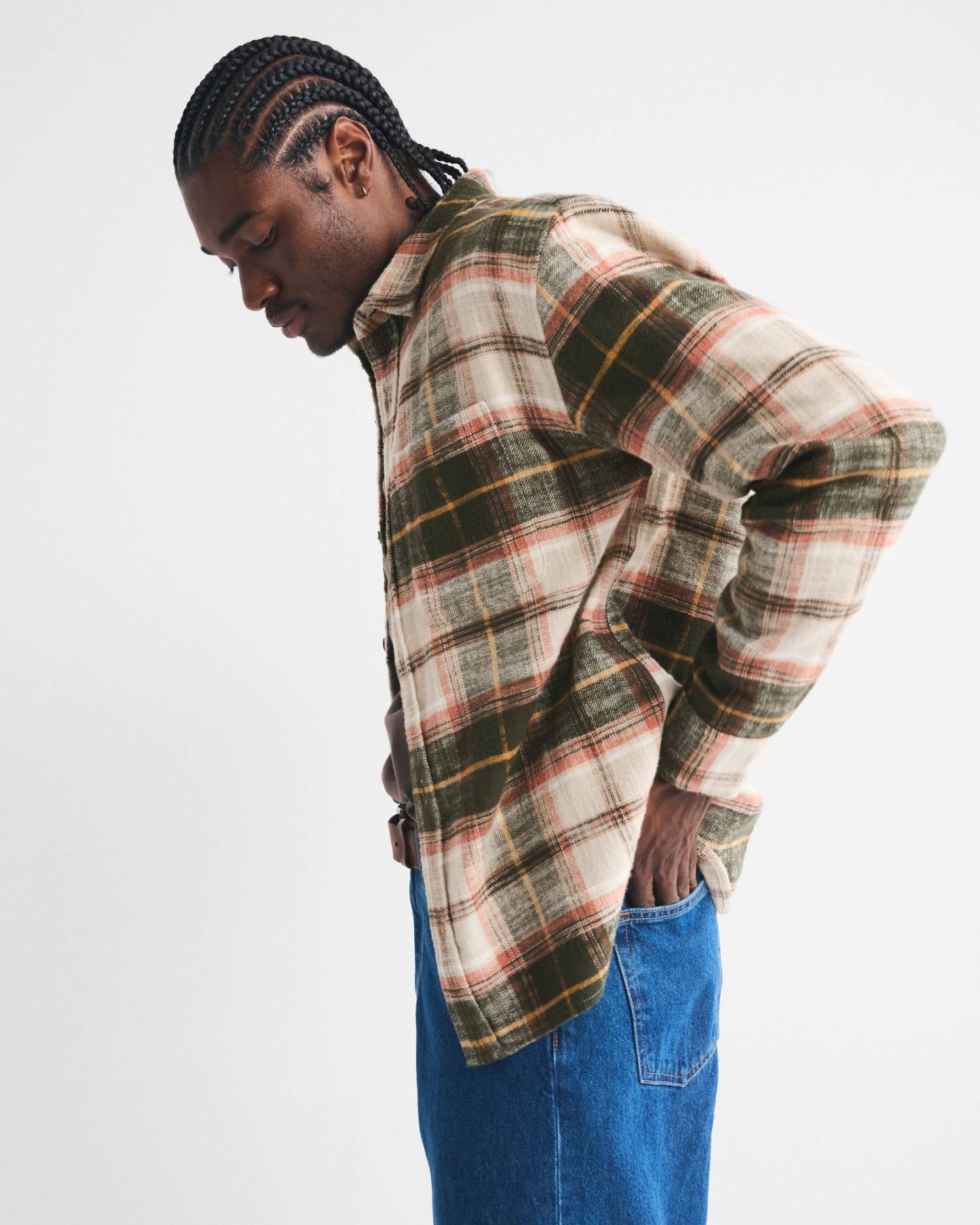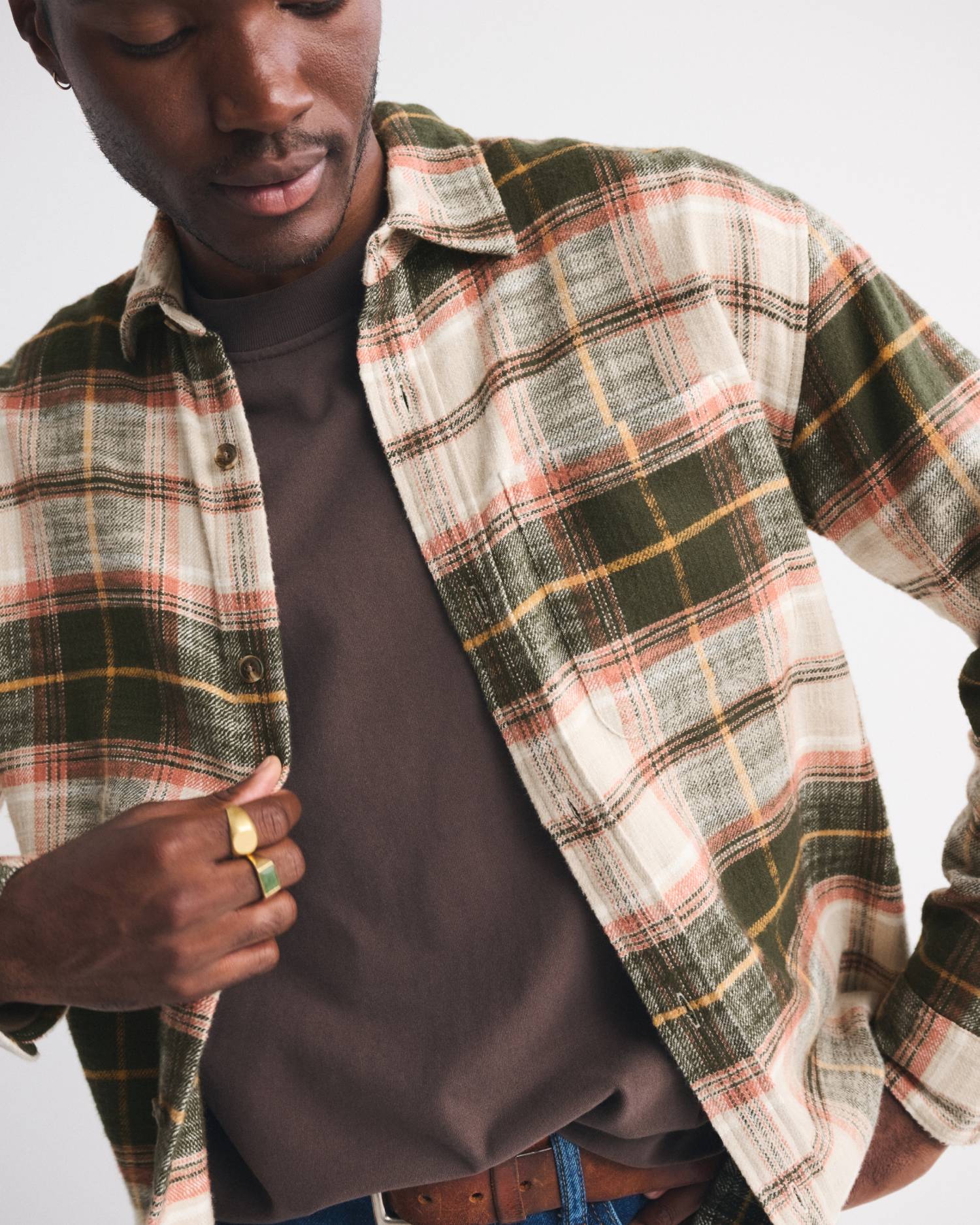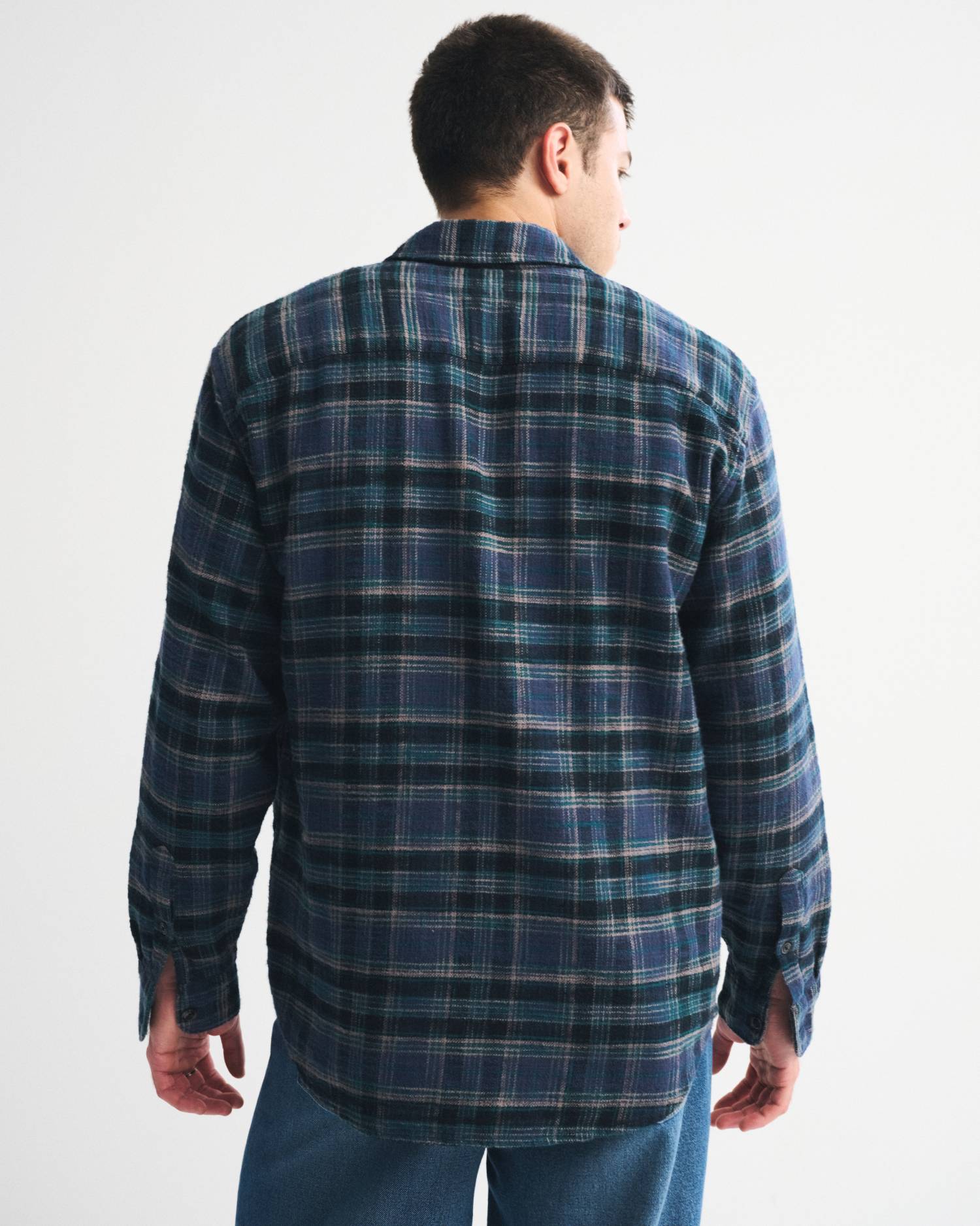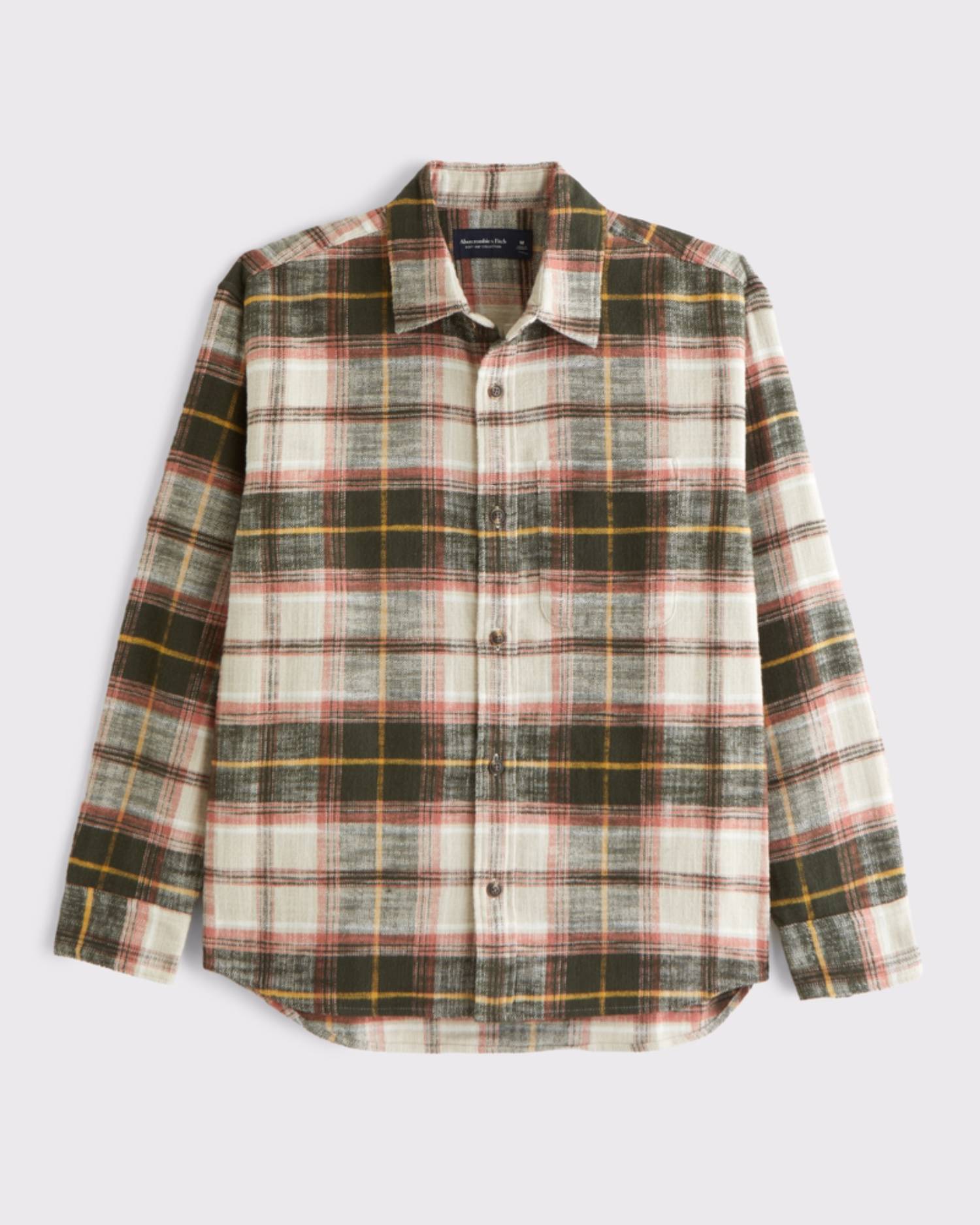 On-trend button-up shirt in a soft??flannel-slub??fabric and??oversized-fit silhouette. Features a left chest pocket, classic collar and curved hem. Imported.