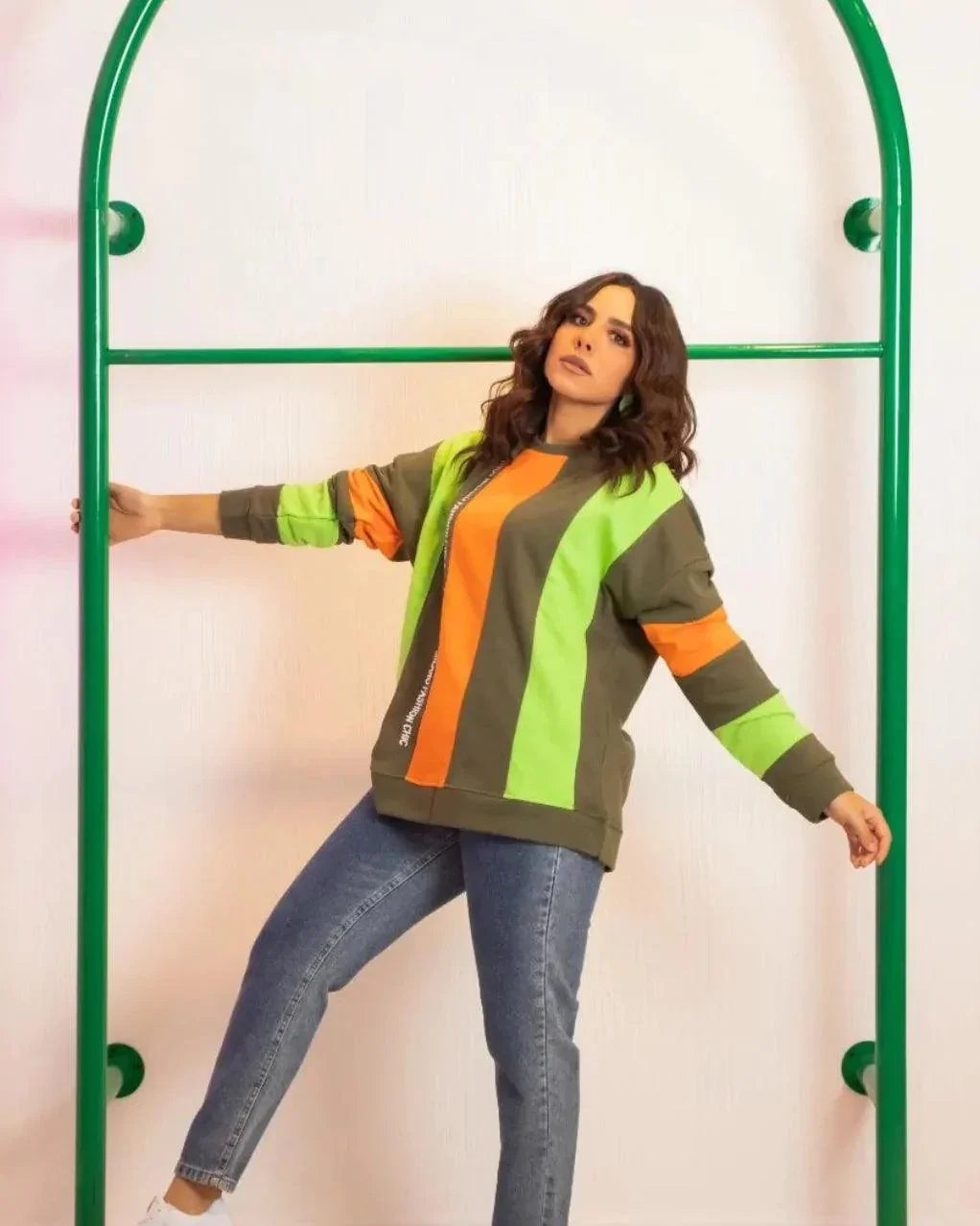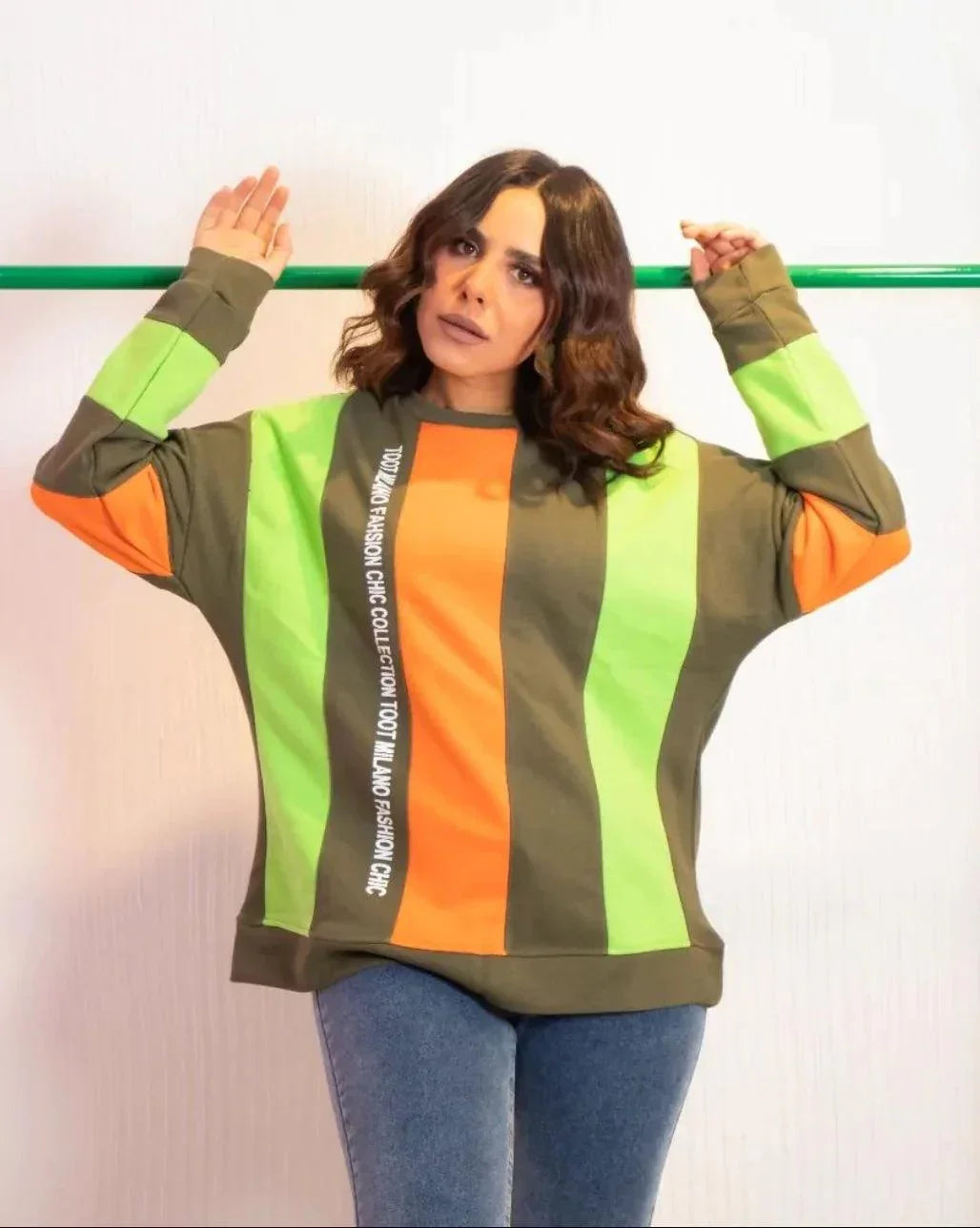 Striped sweatshirt + writing on the side of the chest