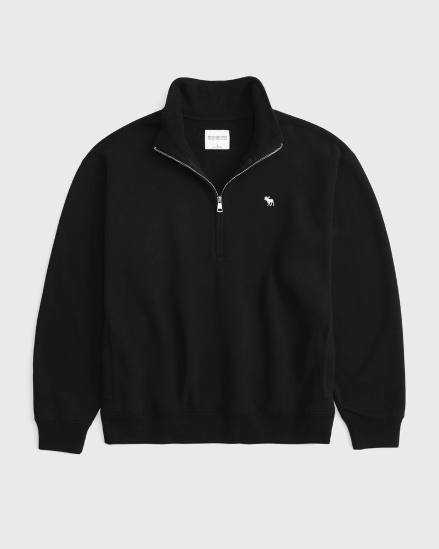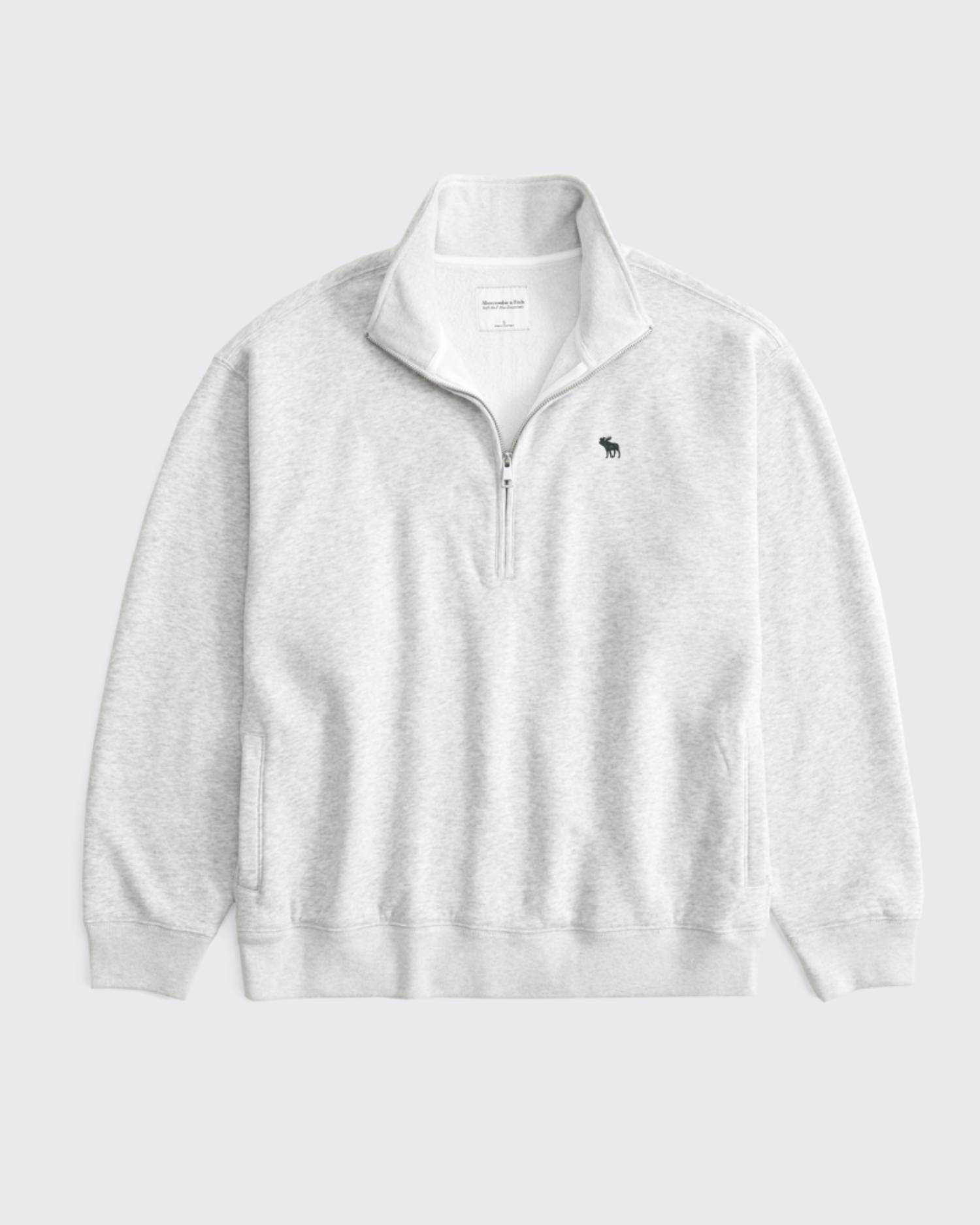 Our comfy sweatshirt in our Soft A&F Max heavyweight fabric and hip-hitting length, featuring embroidered icon at left chest, half-zip detail, on-trend seaming details, mock neckline and banded hem and cuffs. Imported.