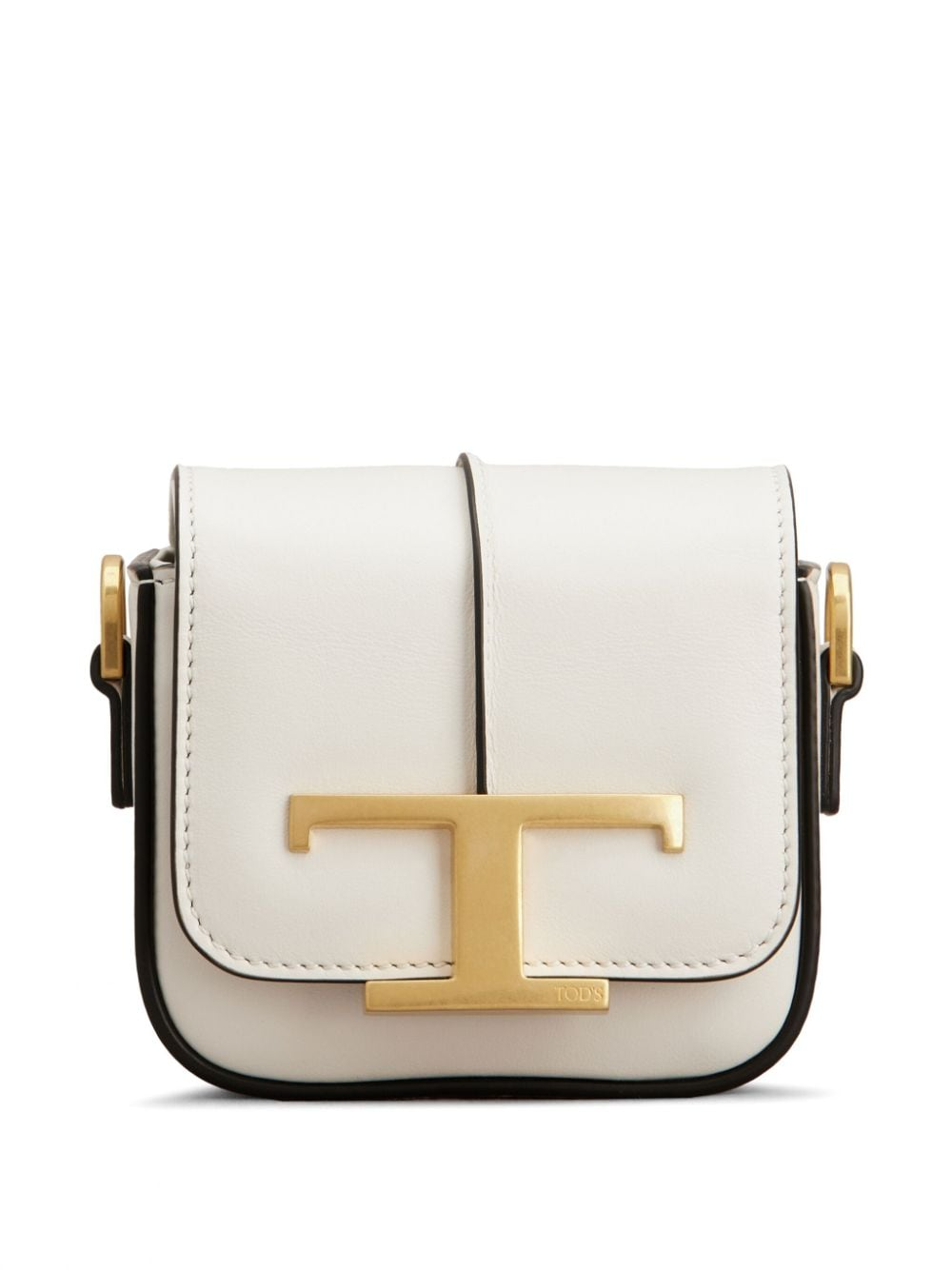 Micro flap bag in soft leather, with central ribbing and branded metal T Timeless accessory. Featuring interchangeable metal handle and shoulder strap, it skillfully combines contemporary vocation and artisanal taste.