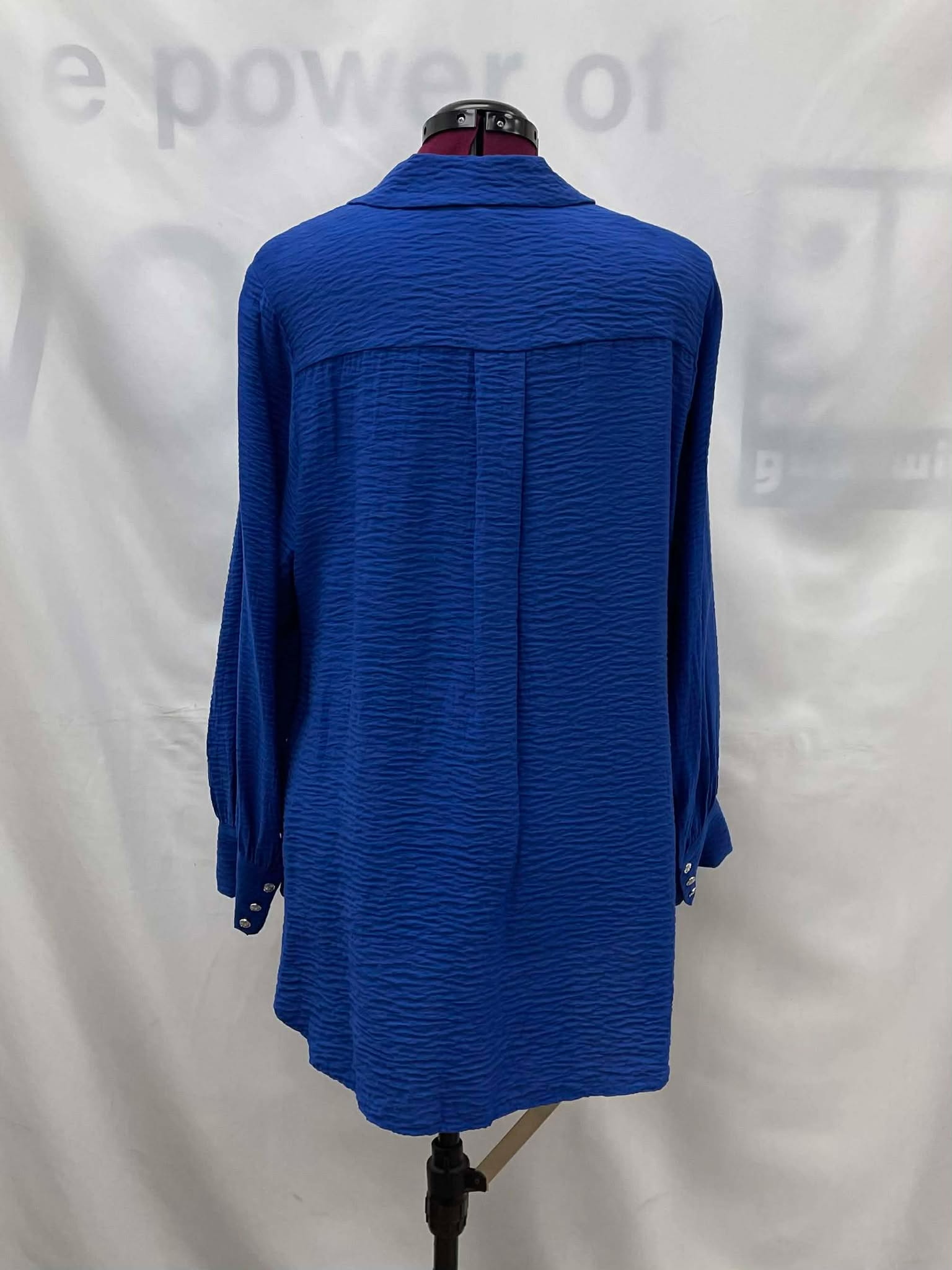 Details: Women’s royal blue, collared, long sleeve Addition Elle shirt.