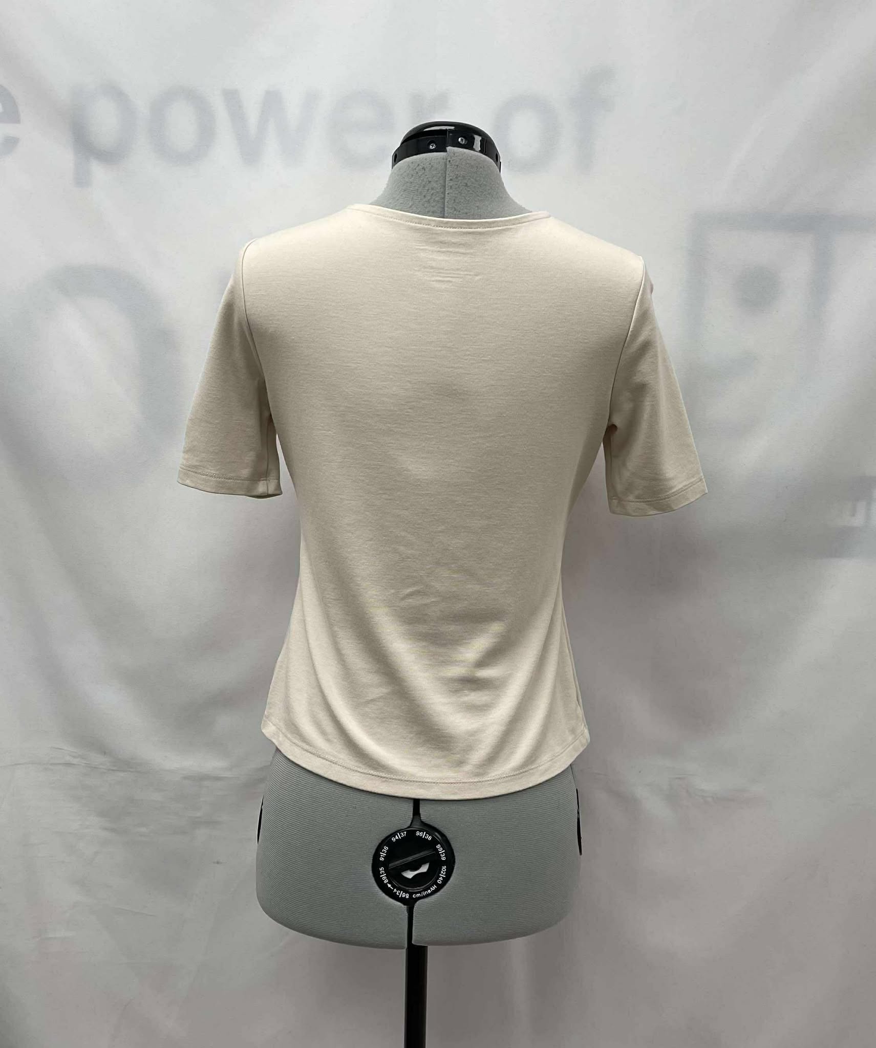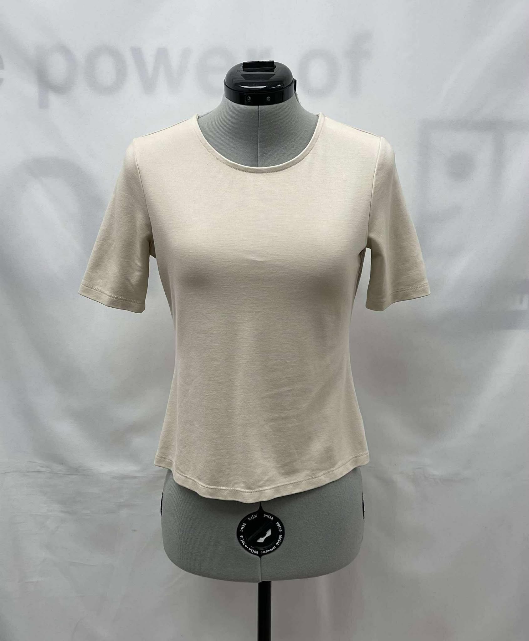 Details: Women’s beige short sleeve Adrienne Vittadini top.?