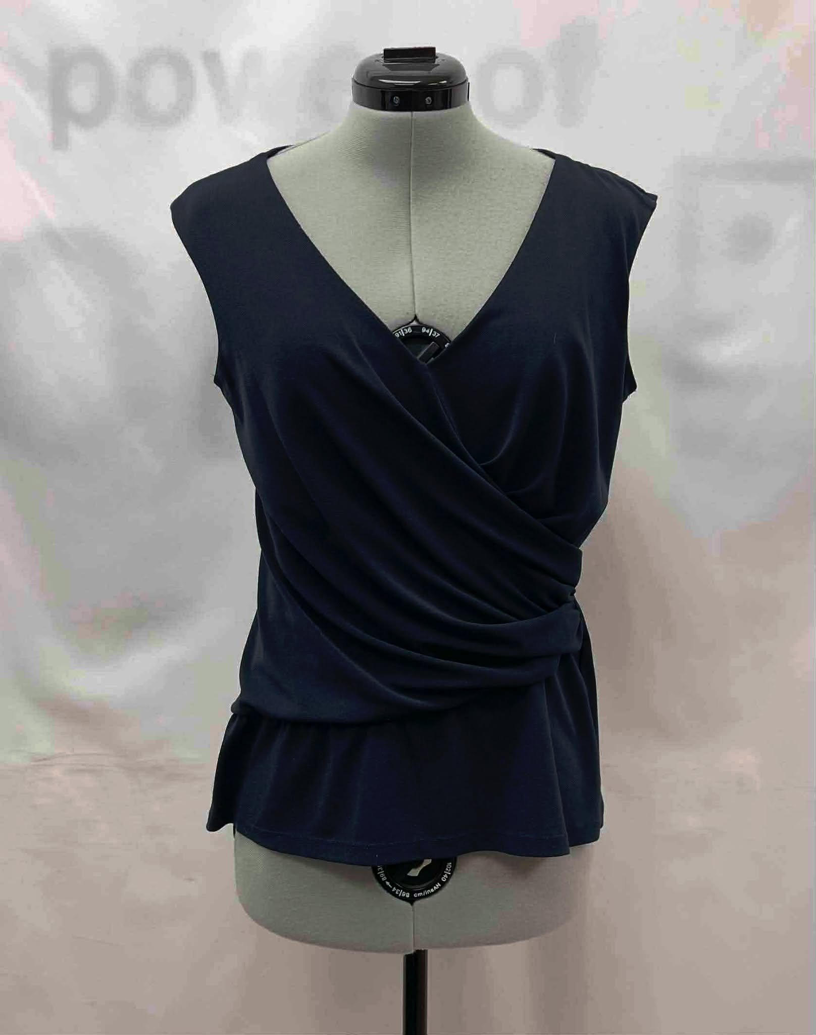 Details: Women’s dark navy blue, sleeveless Ann Taylor top.