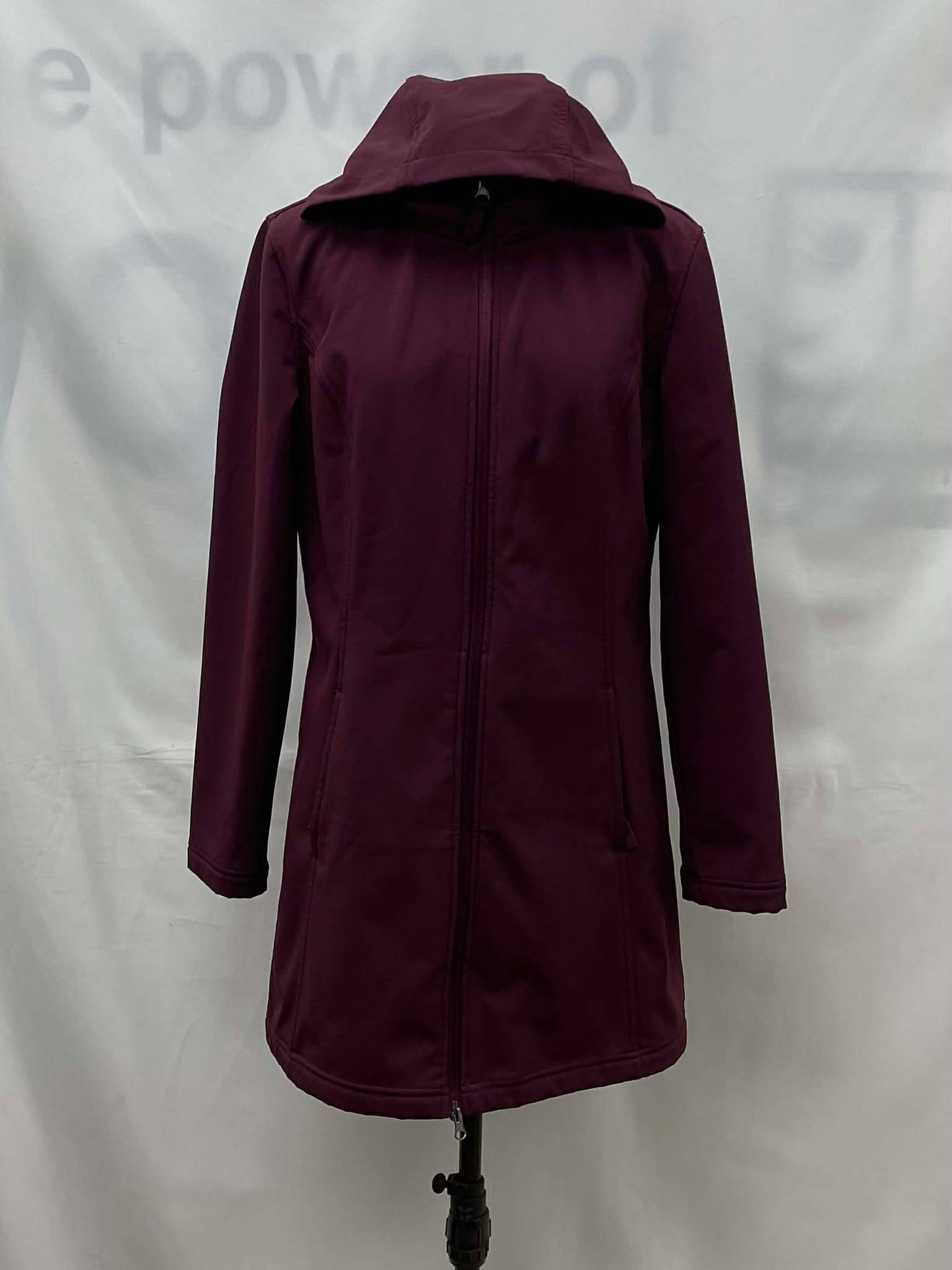 Details: Women’s burgundy, hooded Athletic Works jacket.