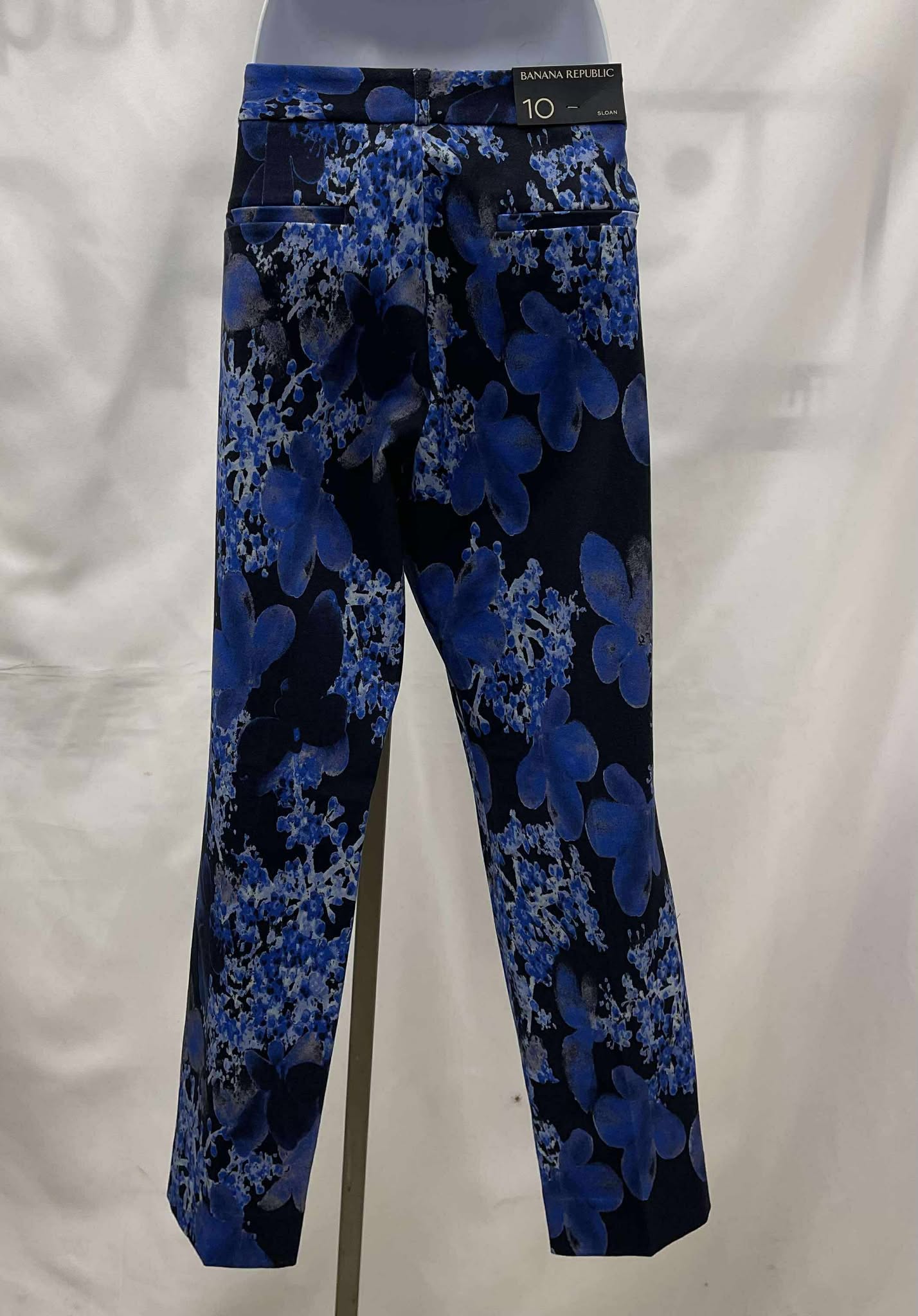 Details: Women’s multi colored blue and navy floral patterned Banana Republic pants. Original tags still attached.?