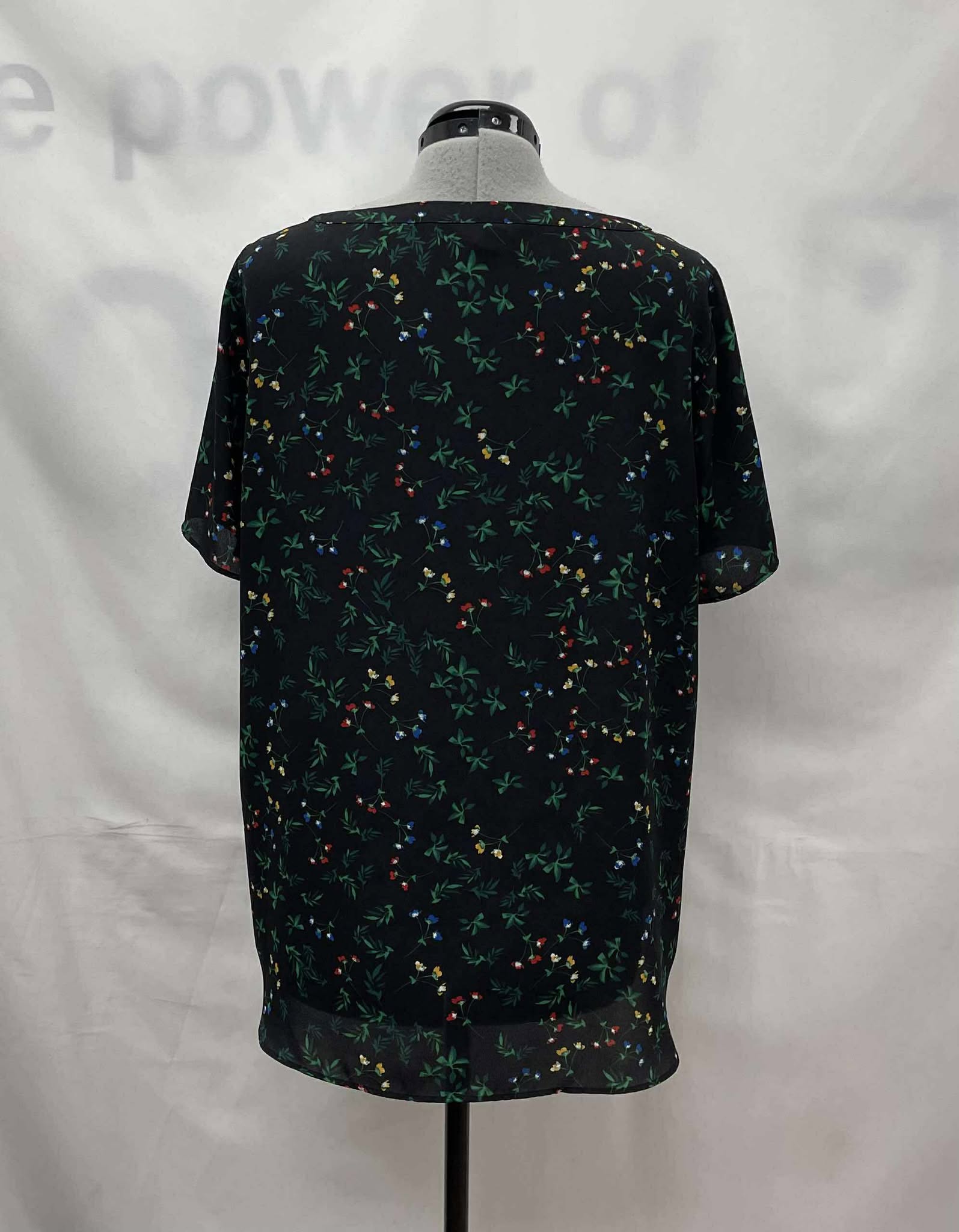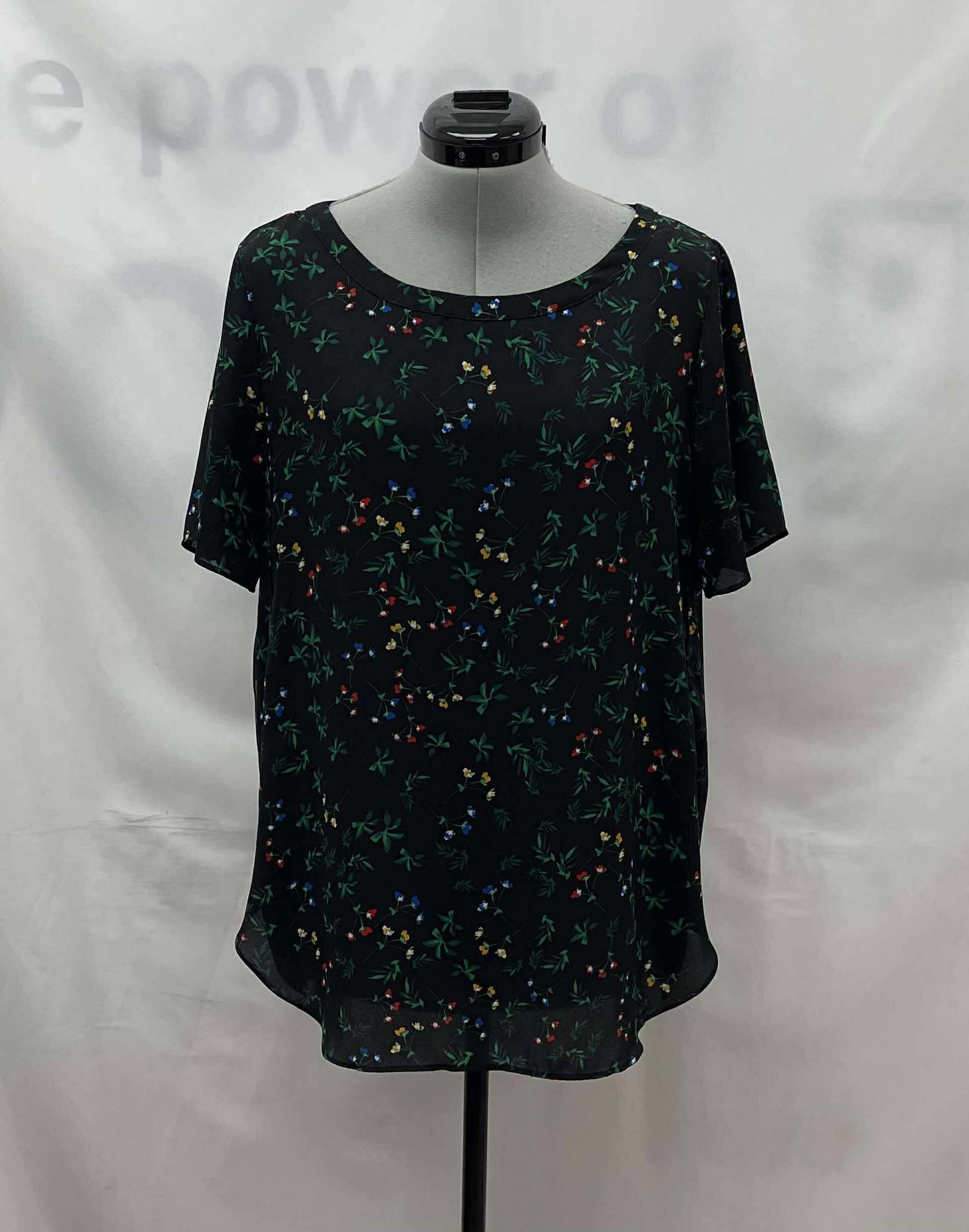 Details: Women’s black with floral print, short sleeve Banana Republic top.