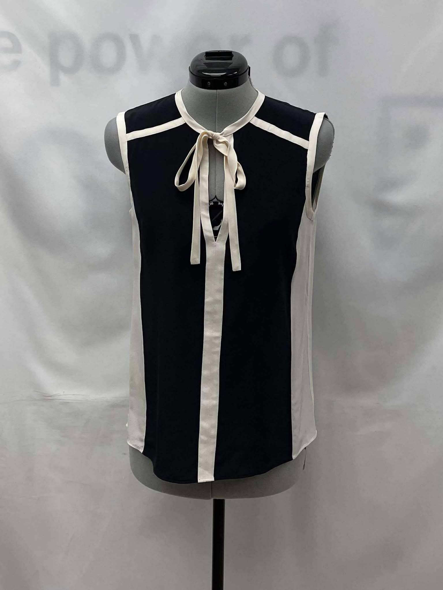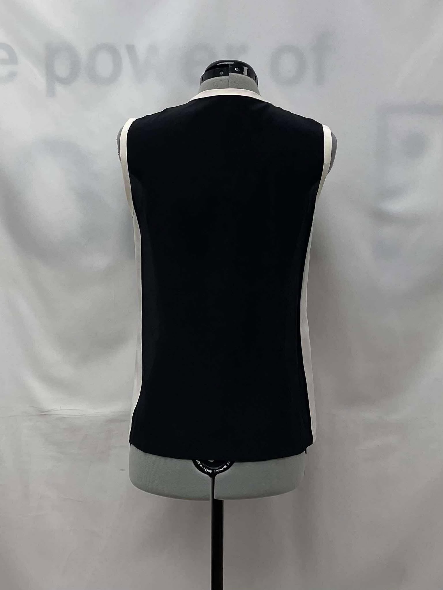 Details: Women’s black with white trim, sleeveless BCBG top.