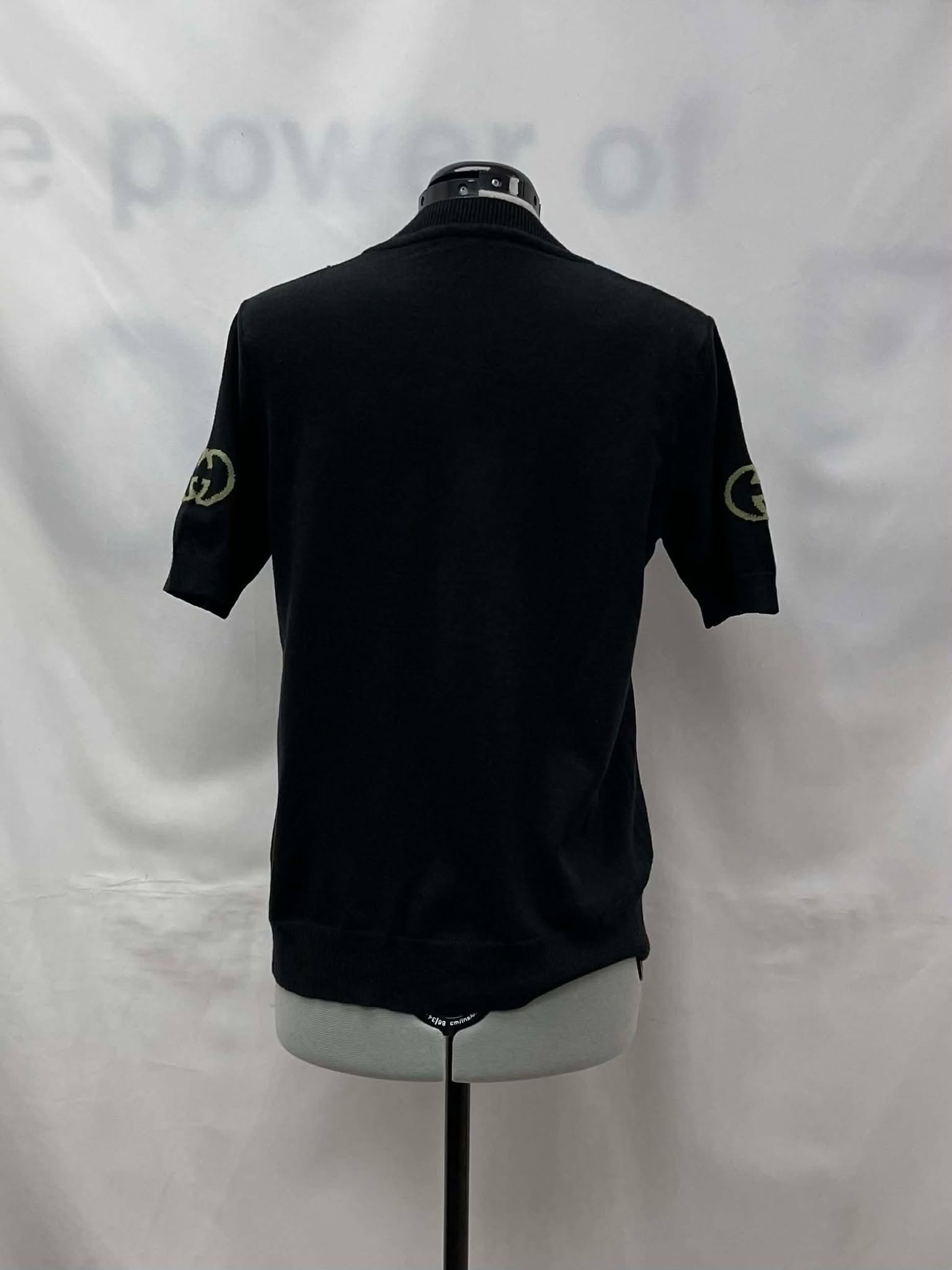 Details: Women’s black with front graphic, short sleeve Gucci top. ( As Is / Not Authenticated )